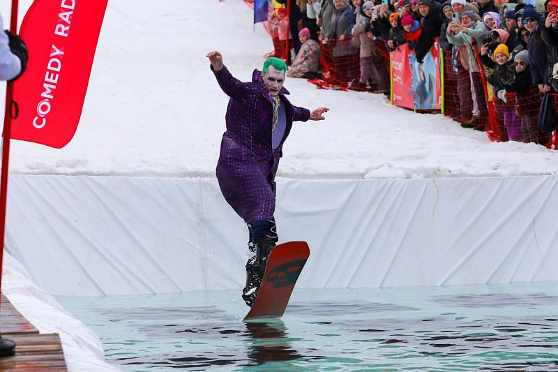 На старте можно было встретить Женщину-кошку и кота Леопольда, пирата и робота, моряка и Человека-паука. Супергерои и сказочные персонажи вышли на трассу, чтобы эффектно съехать с горы прямо в воду и при этом в идеале остаться сухими. Удалось это только одному! «Абсолютным горнолужником» признан Антон Макеев в костюме «Друг президента».Ведущие Comedy Radio заряжали своим настроением и вниманием к каждому участнику! В шоу выходного дня «2,5 человека» может происходить все что угодно, и этот фирменный вайб Ник «Олдскул» Дювбанов, Виктор «Ветерок» Глушко и Лена Корнеева воплотили на склоне. 36 городов активно голосовали за лучшие спуски, чтобы выбрать номинанта на приз зрительских симпатий. По мнению более 1270 проголосовавших им стал Василий Стырков, приехавший на «Горнолужник Comedy Radio» в образе Дарта Мола из «Звездных войн».