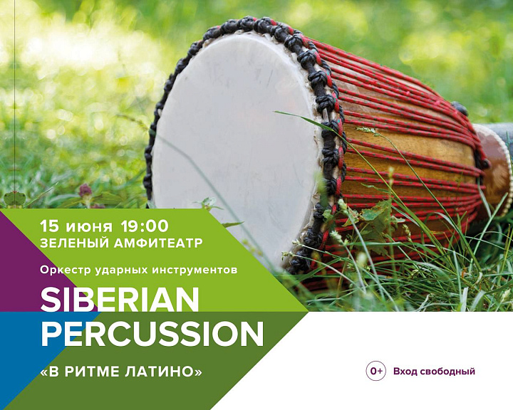 15 июня в 19:00 «Зеленый амфитеатр» распахнет свои лесные кулисы концертом «В ритме латино» в исполнении оркестра ударных инструментов «Siberian Percussion» под руководством Сергея Газизуллина.