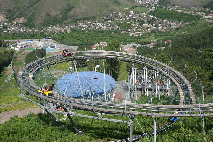 - Родельбан и Зипрайдер можно посетить с 12:00 до 20:00; стоимость билетов на Родельбан для детей (7-14 лет) – 500 рублей, для взрослых (14 лет и старше) – 700 рублей; на Зипрайдер – только для взрослых (14 лет и старше) – 700 рублей.