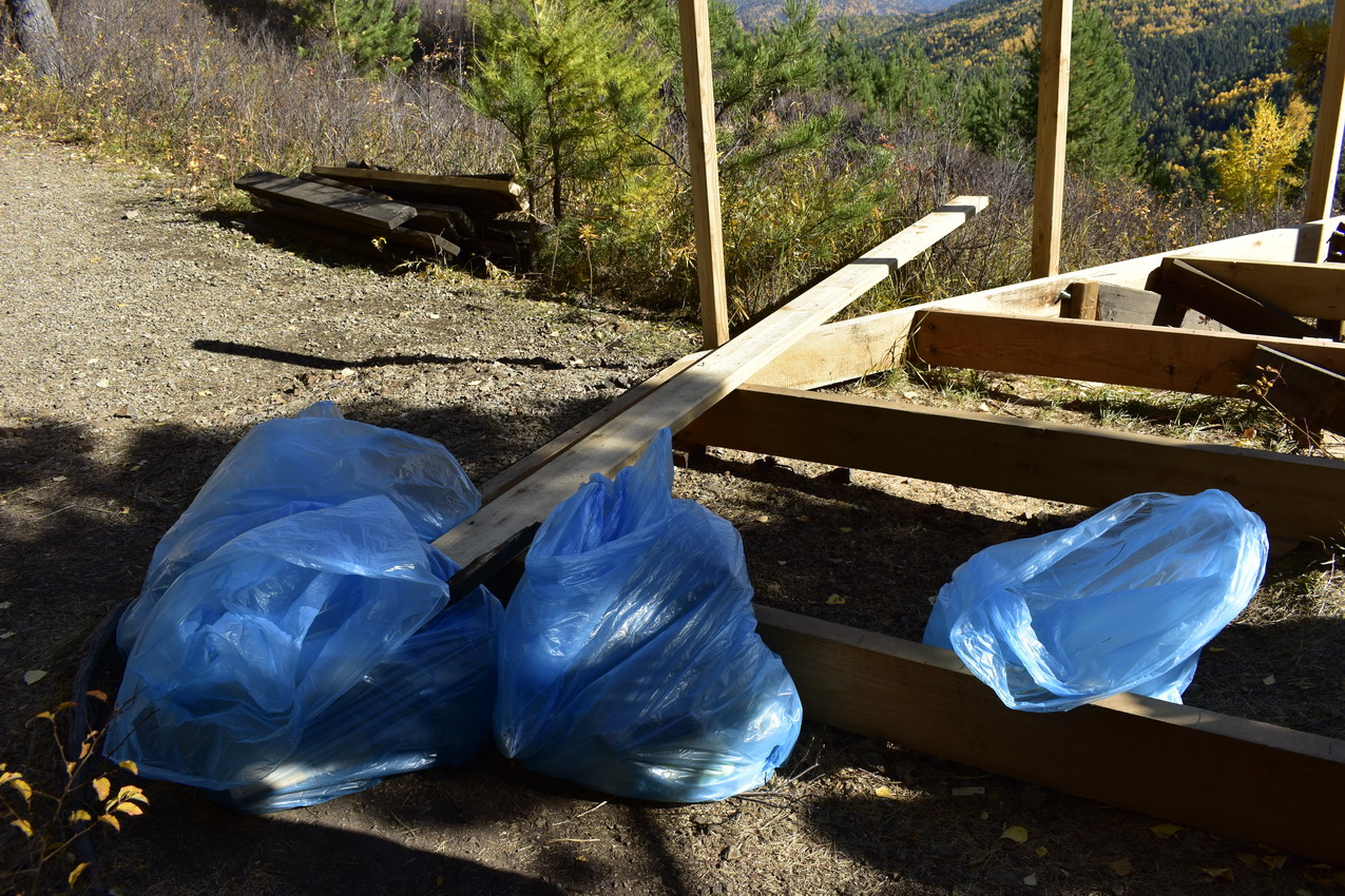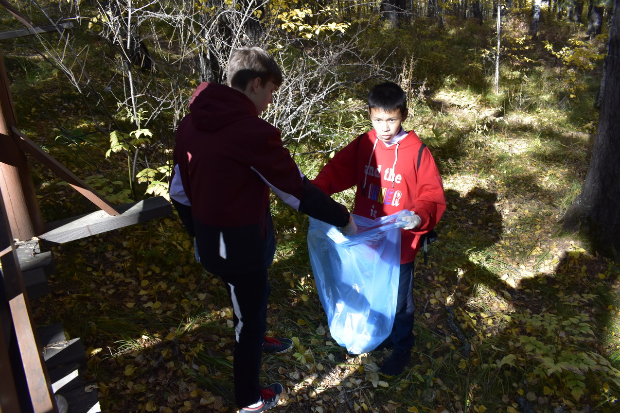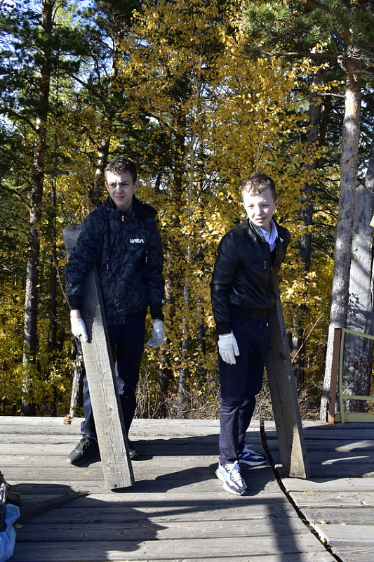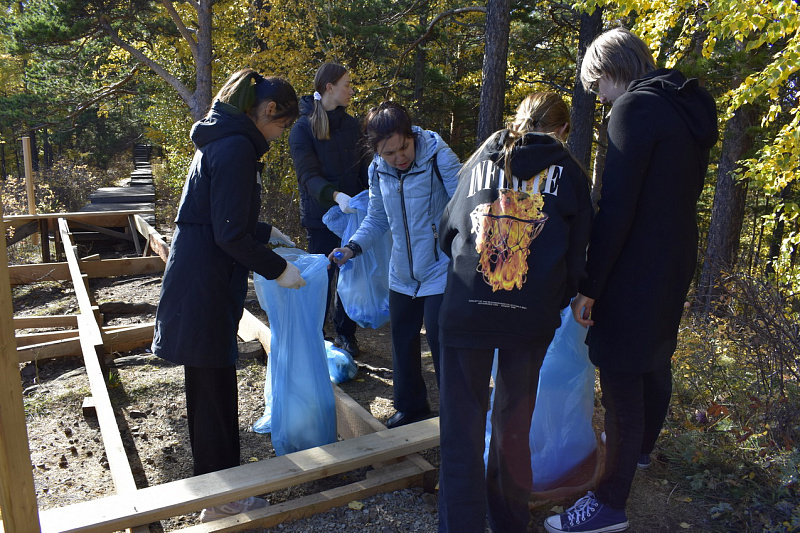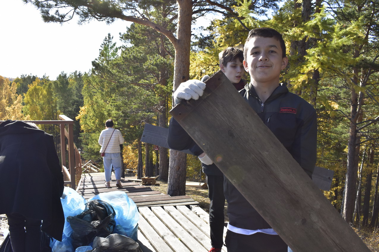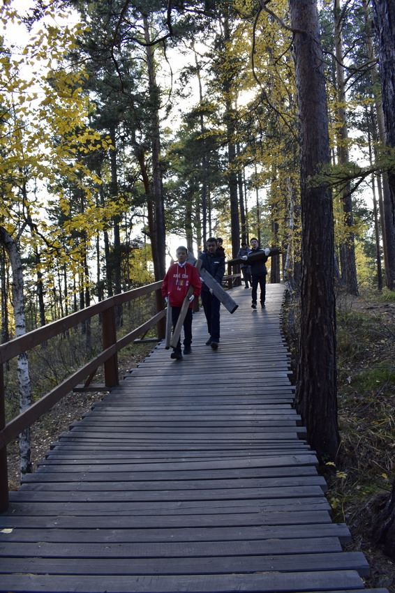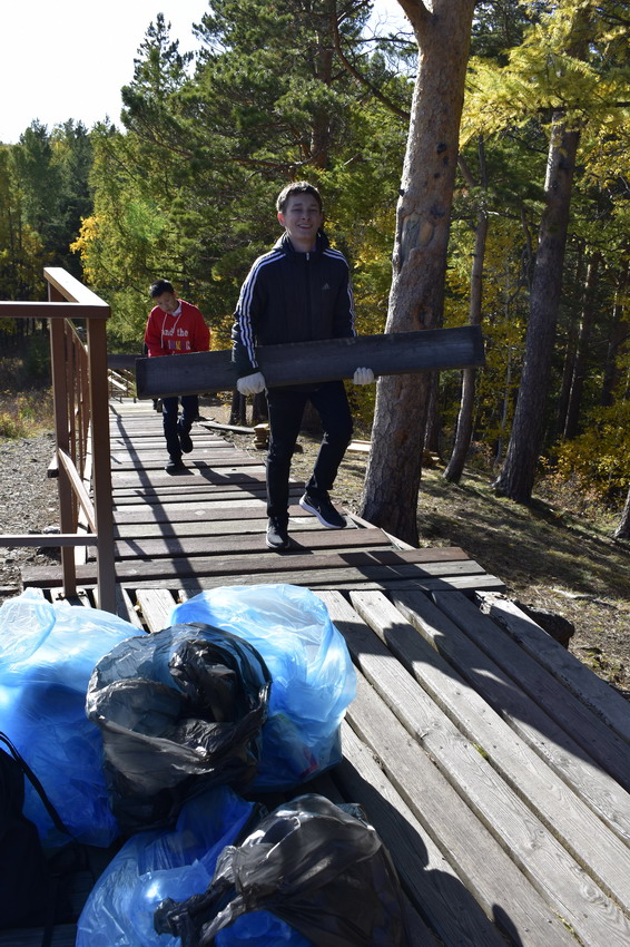 Перед учениками школы №76, за которыми был закреплен участок эко-тропы «Красноярских Столбов», кроме запланированной уборки вдоль настильной тропы и вокруг смотровых площадок, стояла дополнительная задача – вынести строительные материалы, оставшиеся от проведения текущего ремонта инфраструктуры нацпарка.