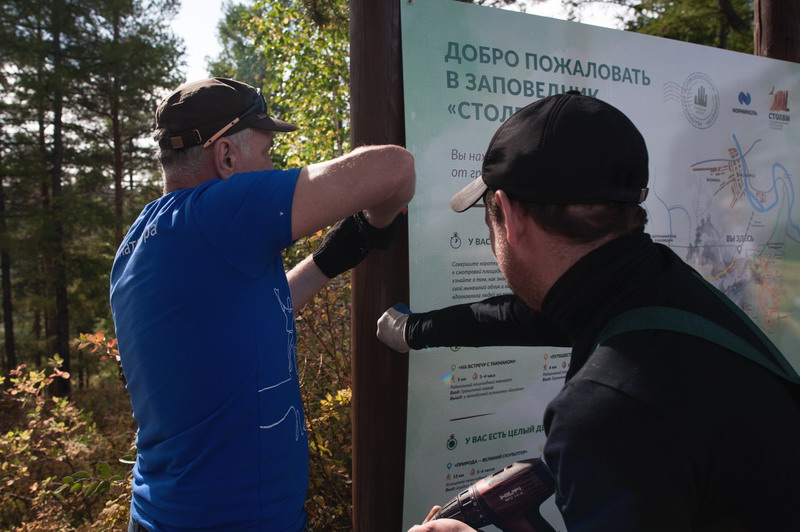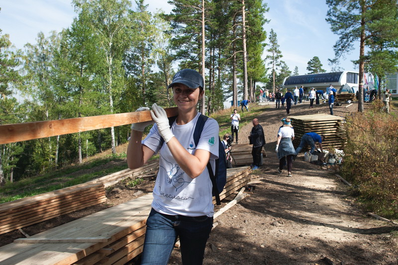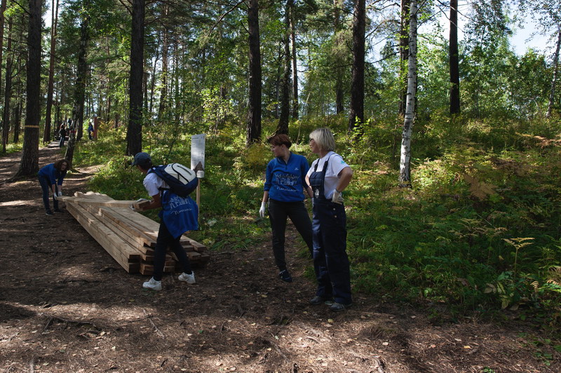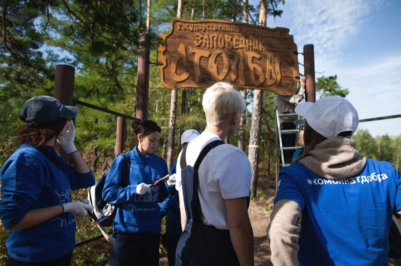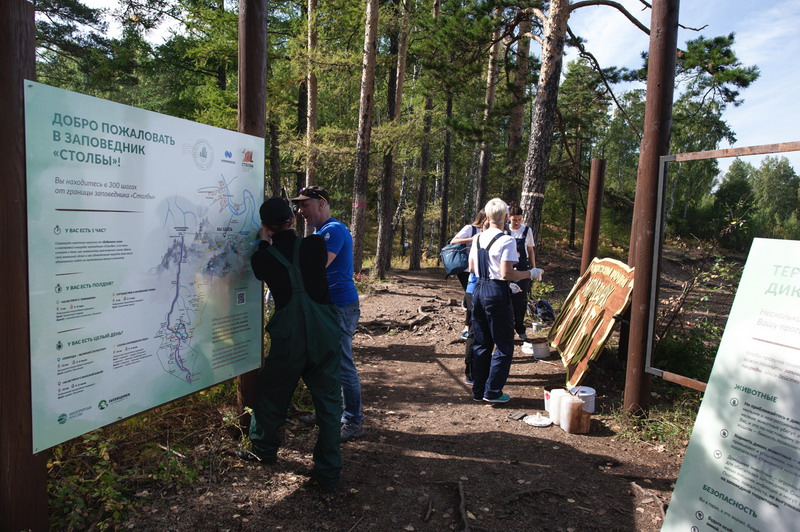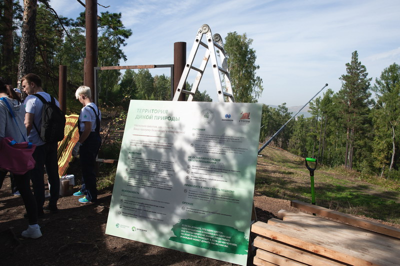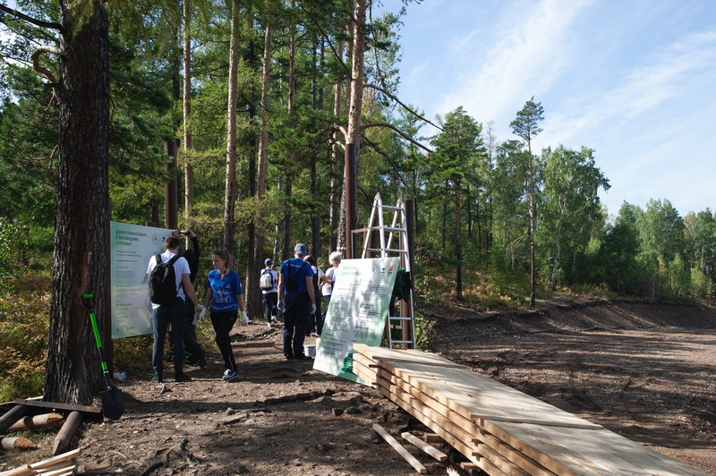 Волонтеры также приняли участие в создании трехсотметровой экотропы в заповеднике «Столбы», ведущей от канатной дороги к смотровой площадке. Ежегодно по этому маршруту проходит порядка 150 тысяч посетителей, поэтому появление обустроенного пути было просто необходимо. Как рассказал директор заповедника Вячеслав Щербаков, при строительстве тропы были применены технологии комбинированного типа, которые являются наиболее щадящим для среды видом благоустройства.