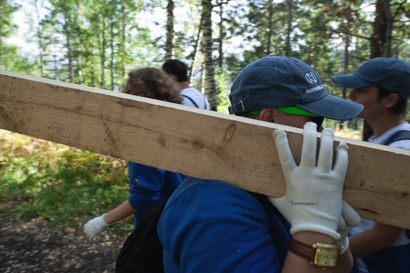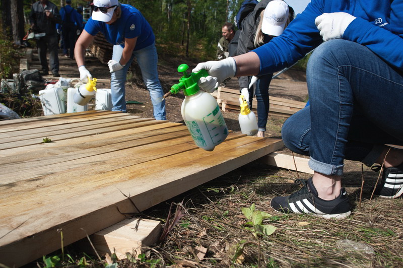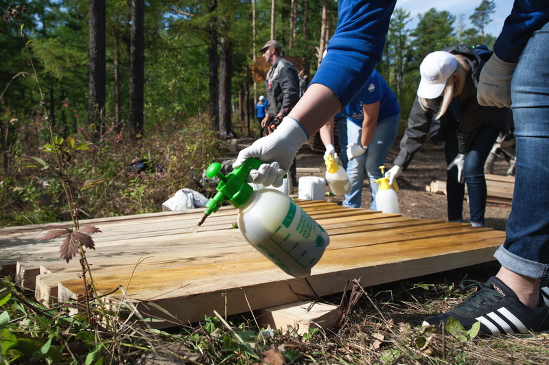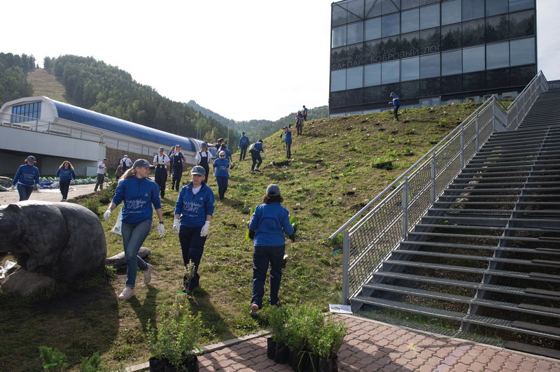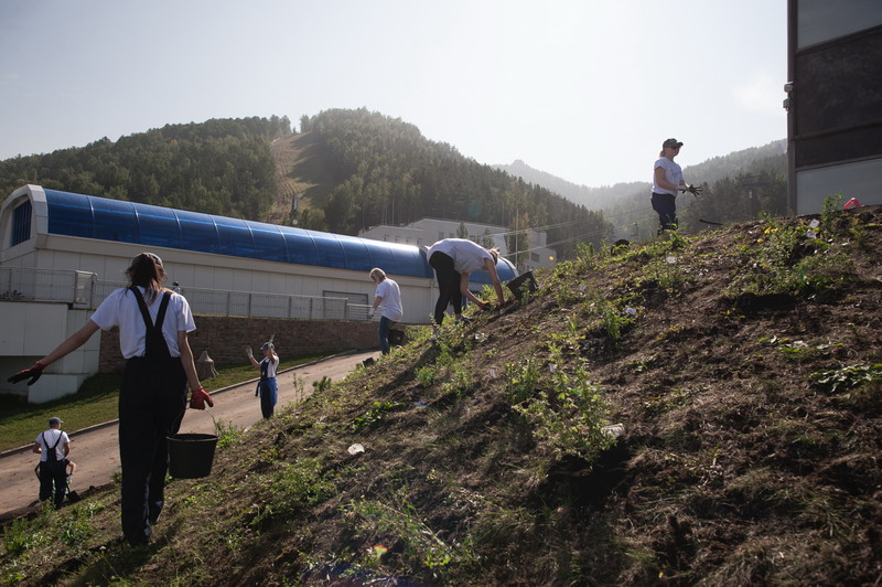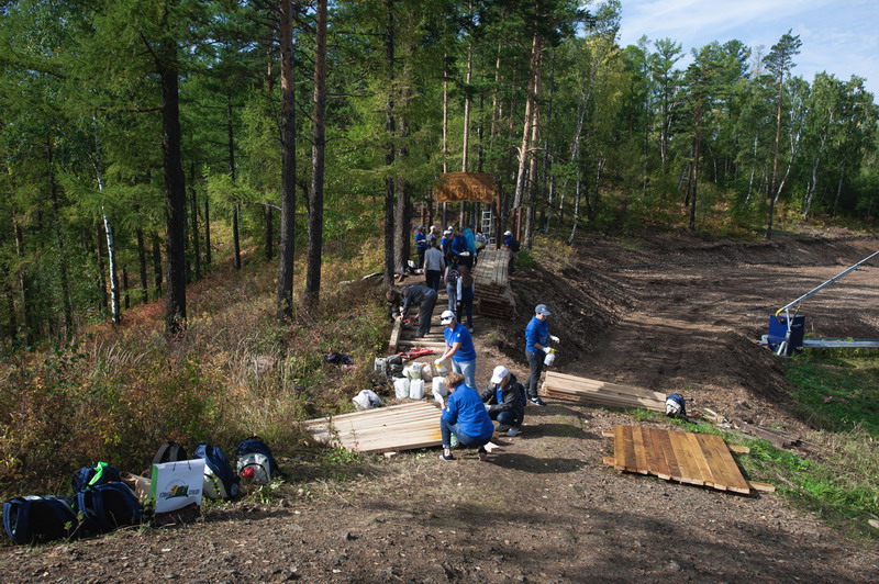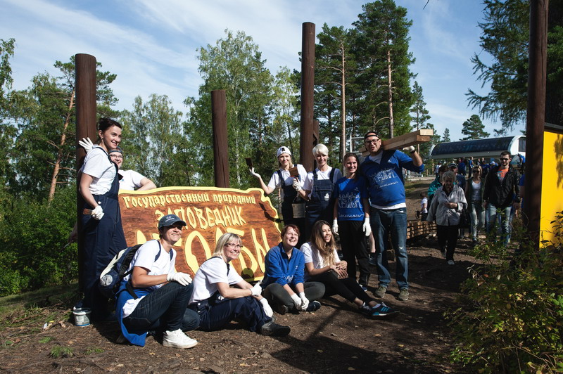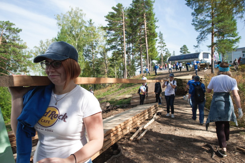 Волонтеры также приняли участие в создании трехсотметровой экотропы в заповеднике «Столбы», ведущей от канатной дороги к смотровой площадке. Ежегодно по этому маршруту проходит порядка 150 тысяч посетителей, поэтому появление обустроенного пути было просто необходимо. Как рассказал директор заповедника Вячеслав Щербаков, при строительстве тропы были применены технологии комбинированного типа, которые являются наиболее щадящим для среды видом благоустройства.