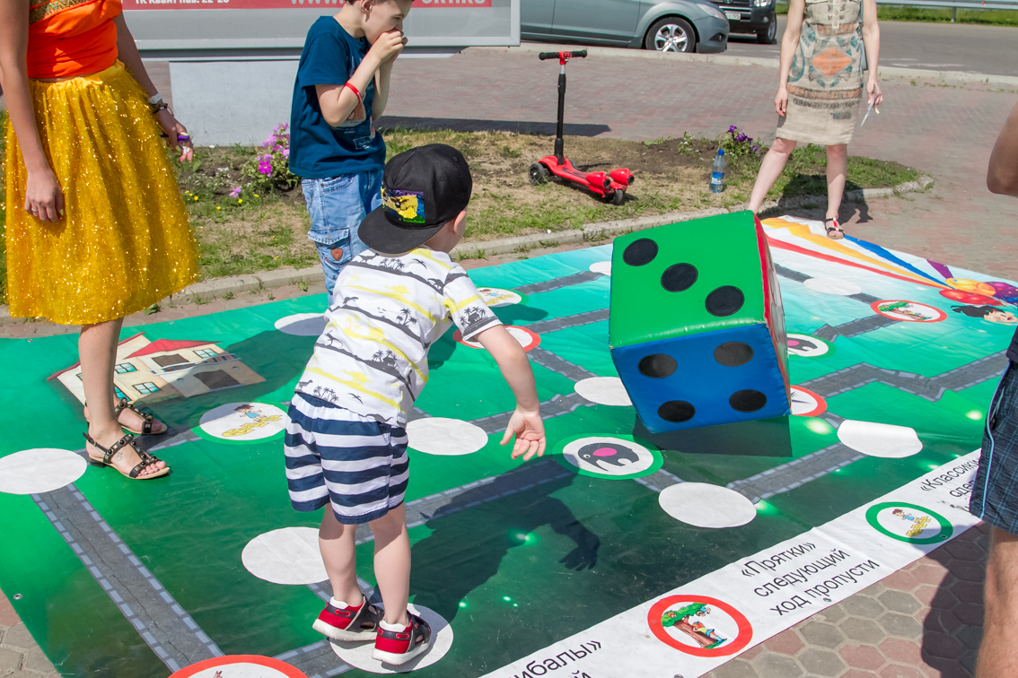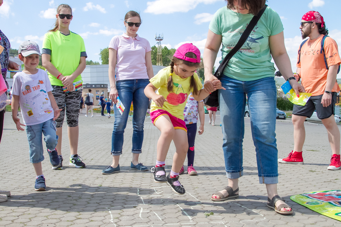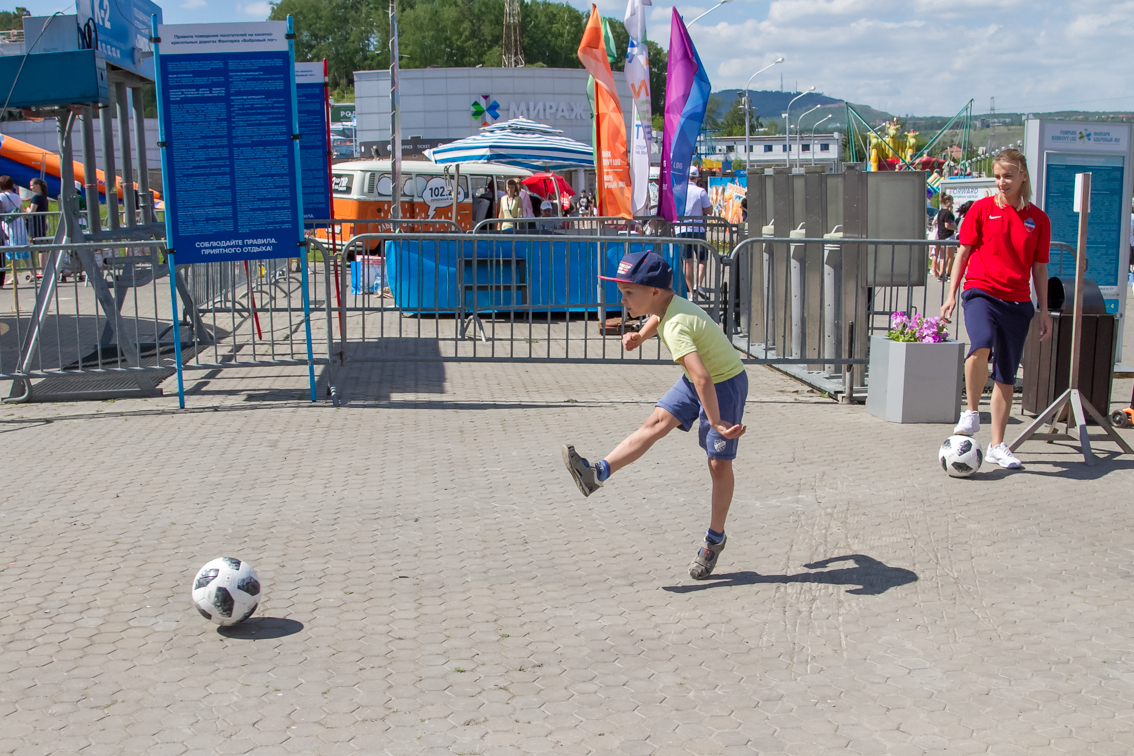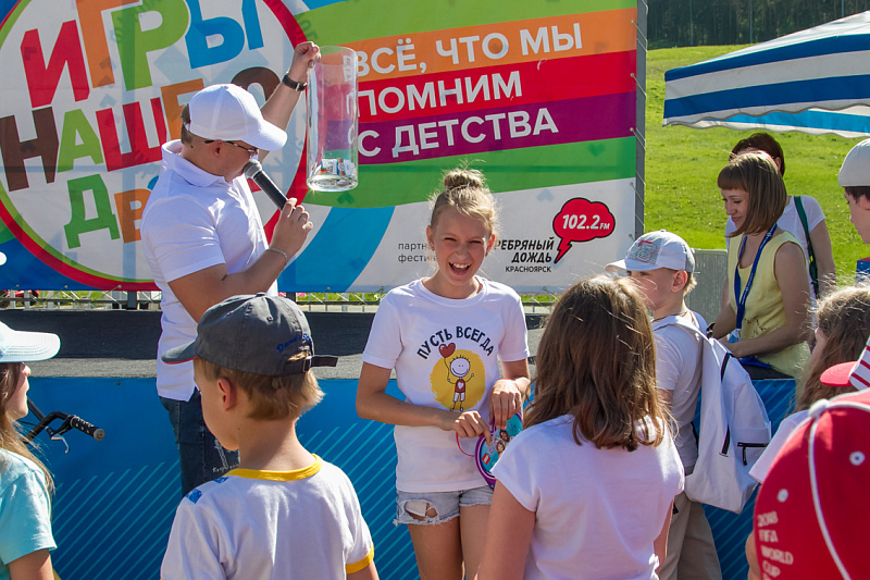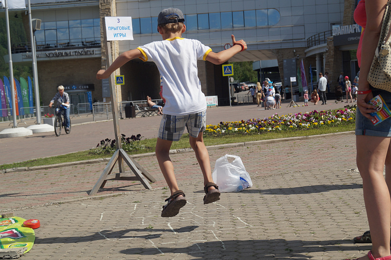 Детям и их родителям Фанпарк предложил отвлечься от работы и гаджетов и провести время на свежем воздухе, поиграв в дворовые игры, популярные десятки лет назад. Так, на фестивале можно было поиграть в «вышибалы», «колечко-колечко», «глухой телефон», «тише едешь, дальше будешь», попрыгать на скакалке и в «классики», порисовать на асфальте, сдать нормативы ГТО, забить мяч в ворота вместе с футбольной командой «Енисей», пройти полосу препятствий с регбийной командой «Енисей-СТМ» и многое-многое другое. Все игровые площадки были поделены на локации, пройдя которые участники могли выиграть сладкие призы - бесплатное мороженое. А те, кто собирал отметки с пяти и более площадок, участвовали в розыгрыше призов.