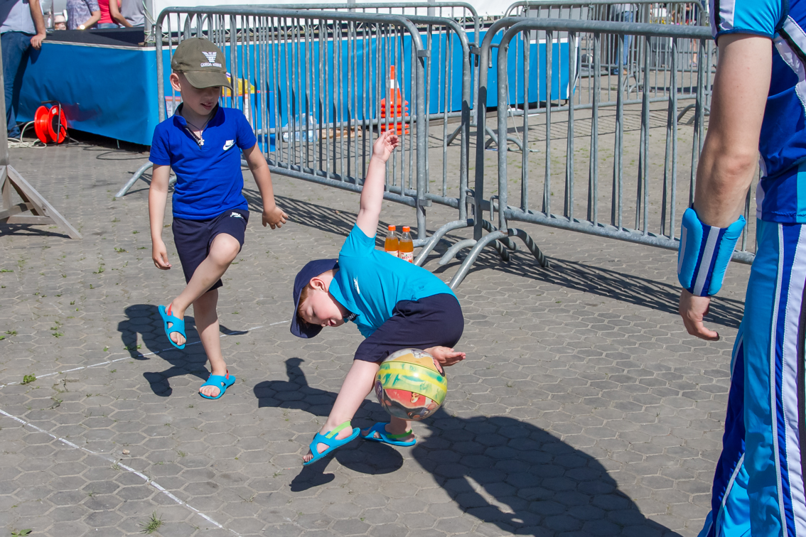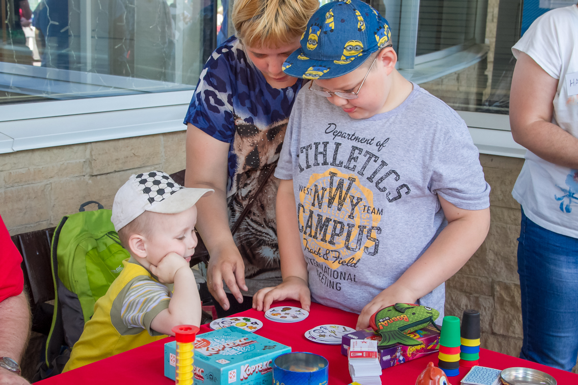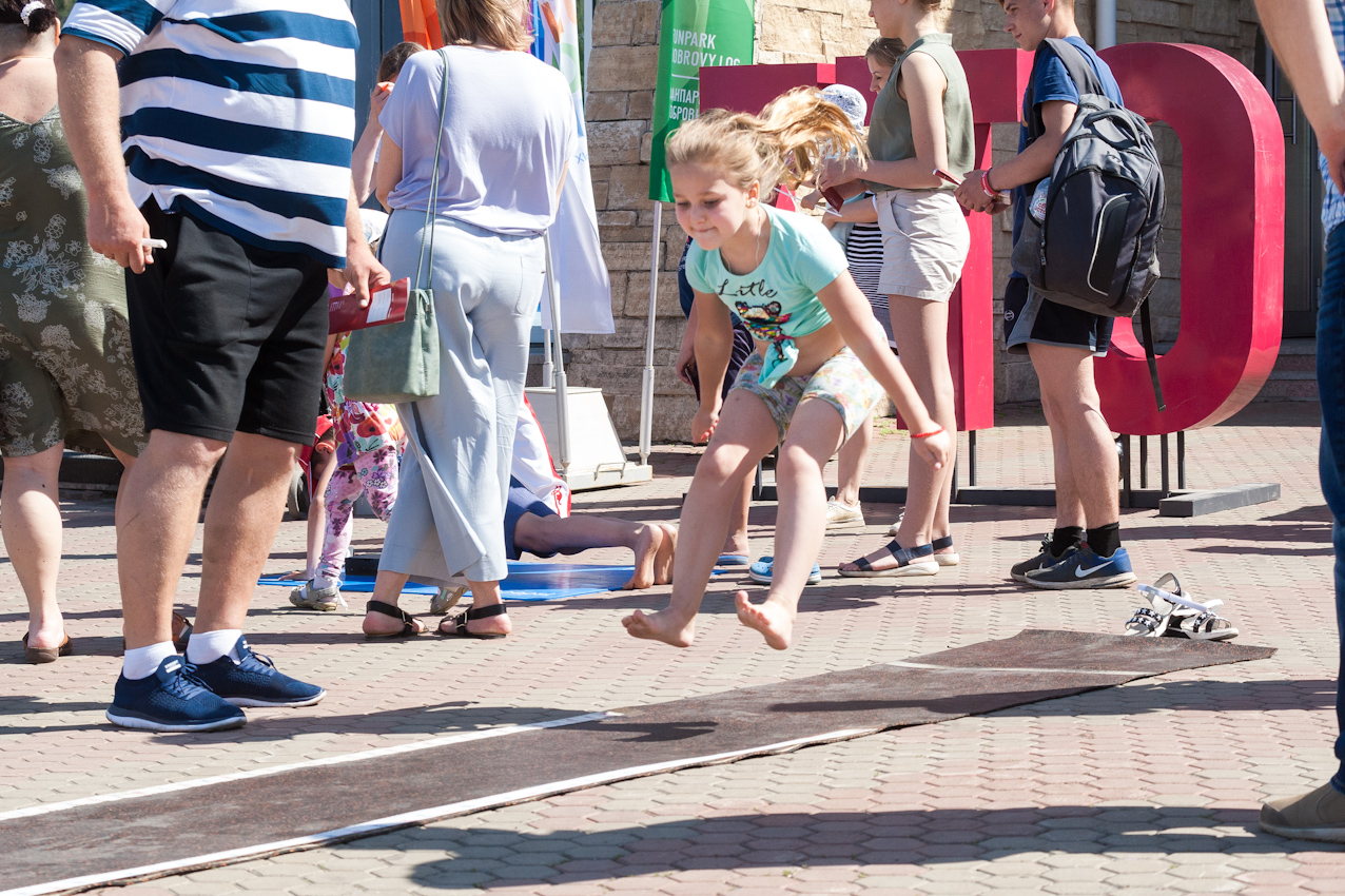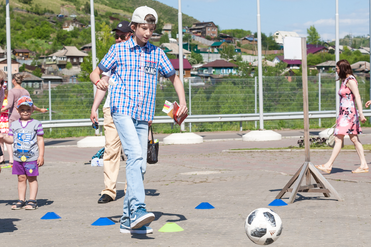 Детям и их родителям Фанпарк предложил отвлечься от работы и гаджетов и провести время на свежем воздухе, поиграв в дворовые игры, популярные десятки лет назад. Так, на фестивале можно было поиграть в «вышибалы», «колечко-колечко», «глухой телефон», «тише едешь, дальше будешь», попрыгать на скакалке и в «классики», порисовать на асфальте, сдать нормативы ГТО, забить мяч в ворота вместе с футбольной командой «Енисей», пройти полосу препятствий с регбийной командой «Енисей-СТМ» и многое-многое другое. Все игровые площадки были поделены на локации, пройдя которые участники могли выиграть сладкие призы - бесплатное мороженое. А те, кто собирал отметки с пяти и более площадок, участвовали в розыгрыше призов.