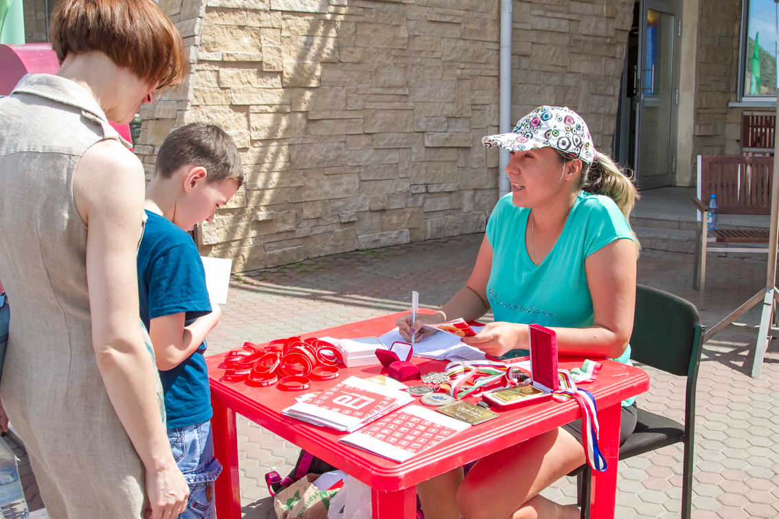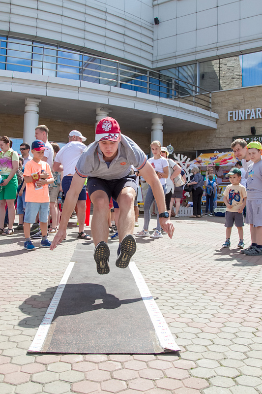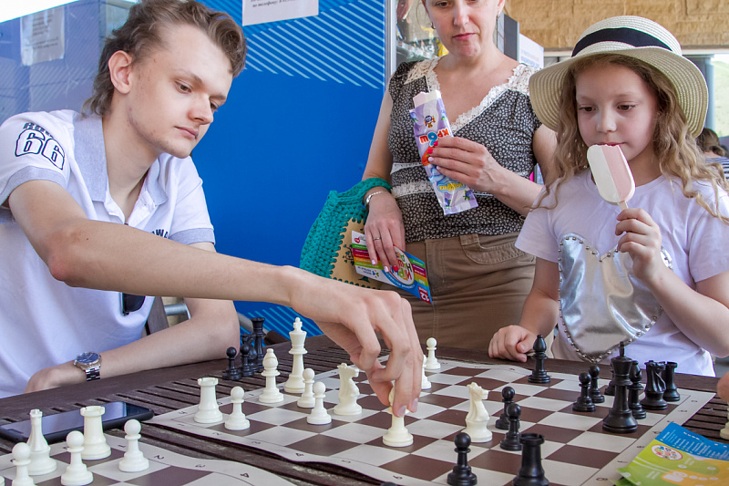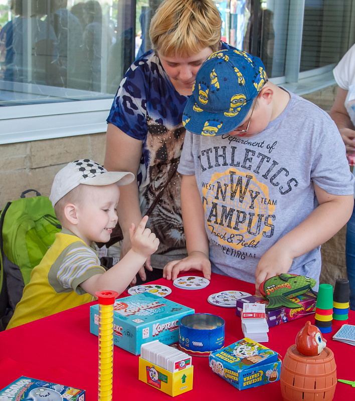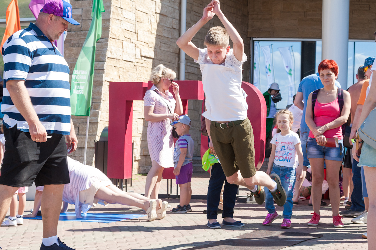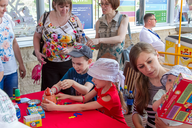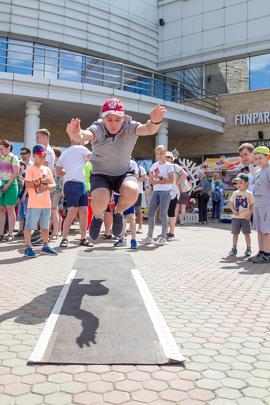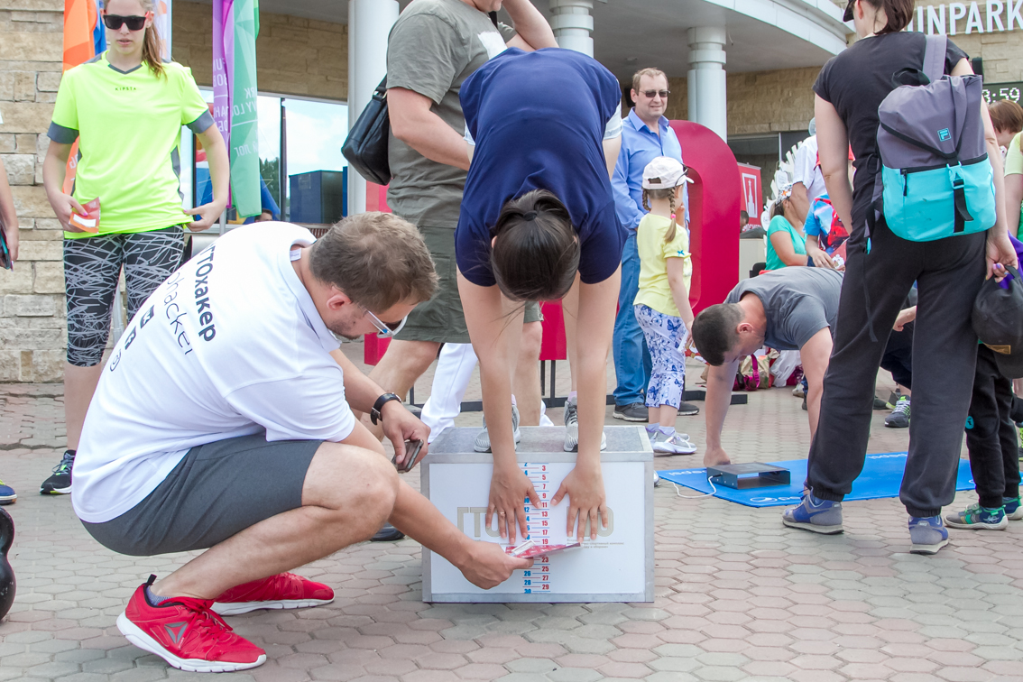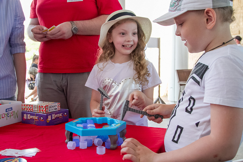 Одной из самых популярных локаций стала спортивная, где и малыши, и взрослые могли проверить свою выносливость и силу. Здесь можно было тягать гирю, отжиматься при помощи специального устройства, считающего повторения, прыгать в длину, поиграть в шахматы и так далее.