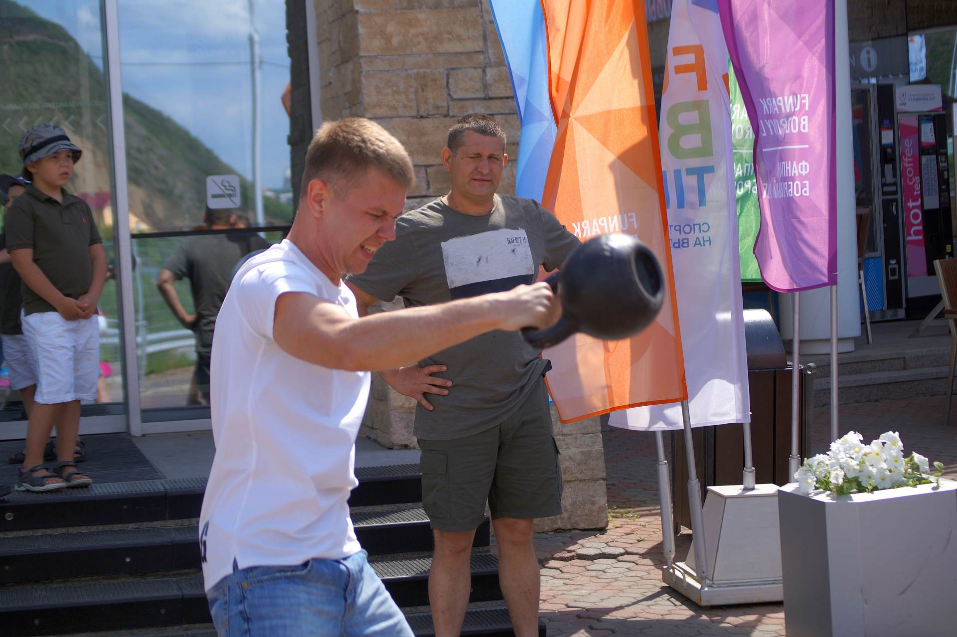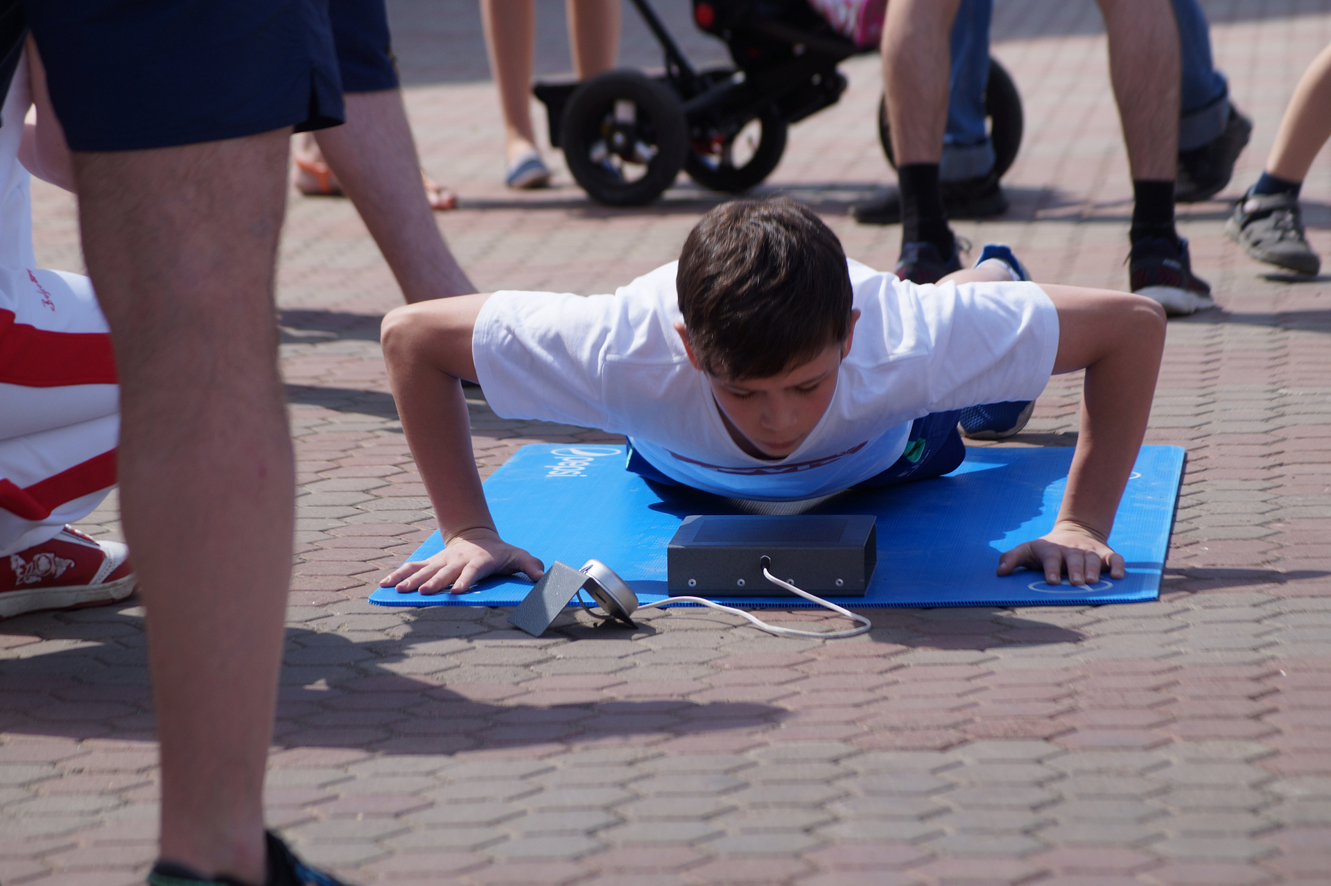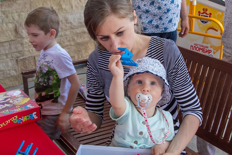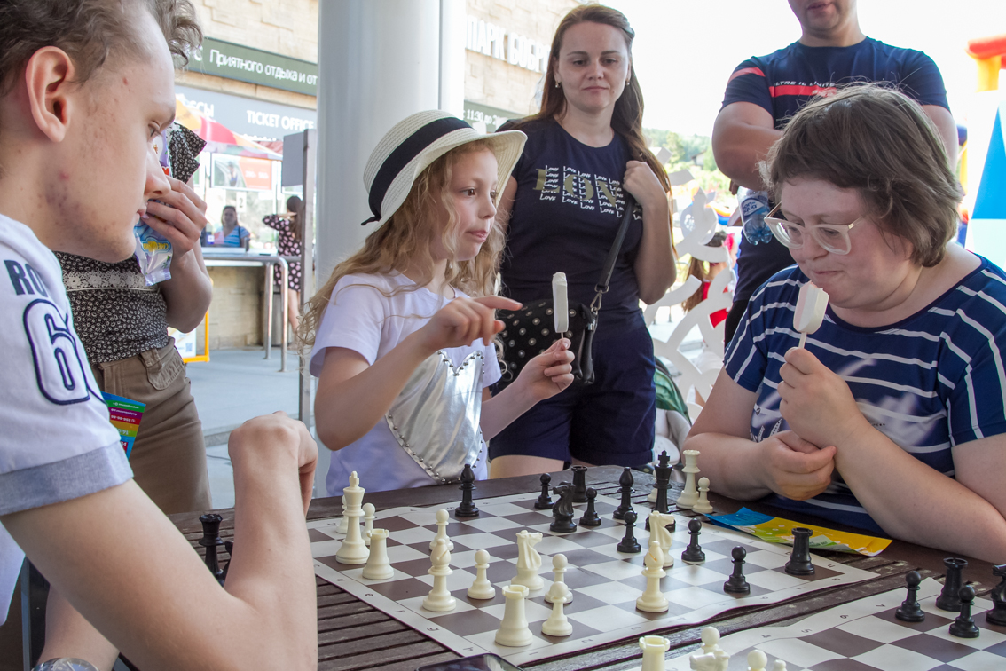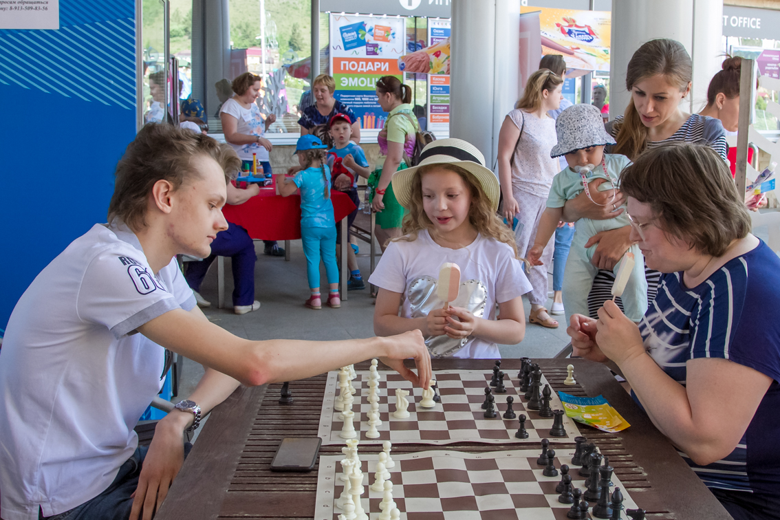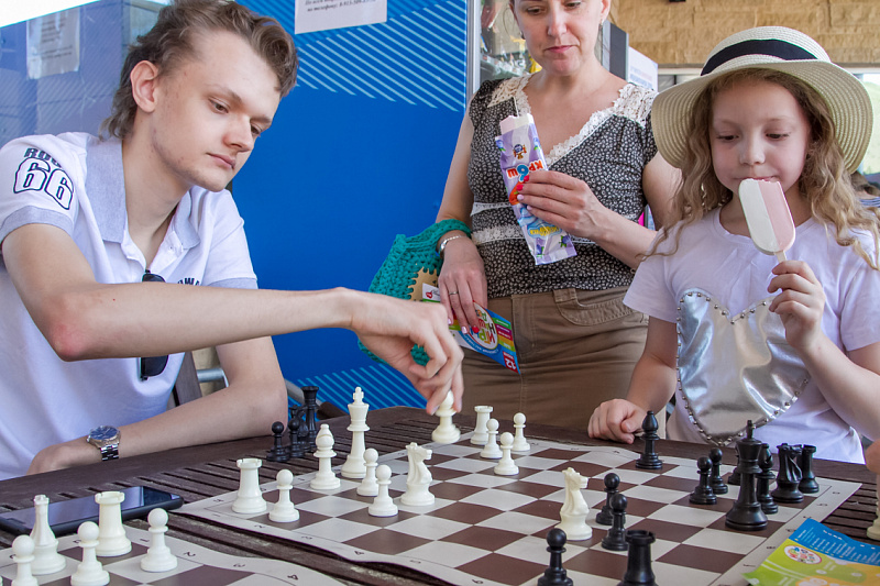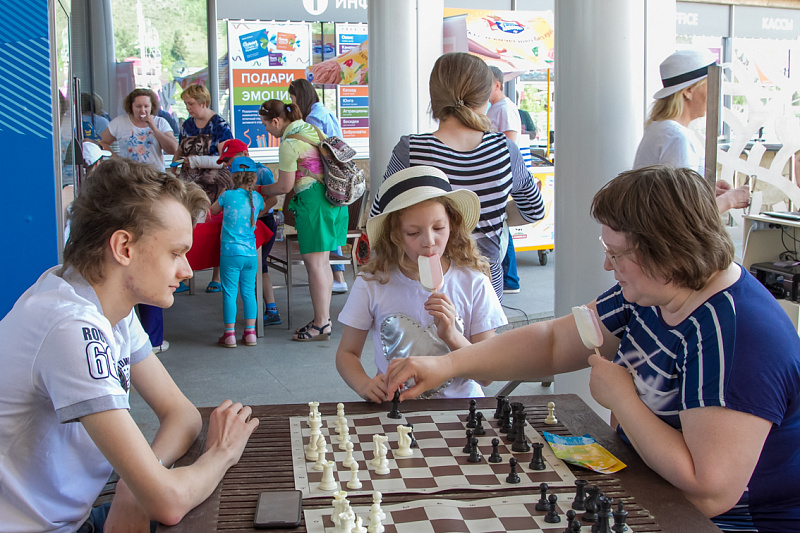 Одной из самых популярных локаций стала спортивная, где и малыши, и взрослые могли проверить свою выносливость и силу. Здесь можно было тягать гирю, отжиматься при помощи специального устройства, считающего повторения, прыгать в длину, поиграть в шахматы и так далее.