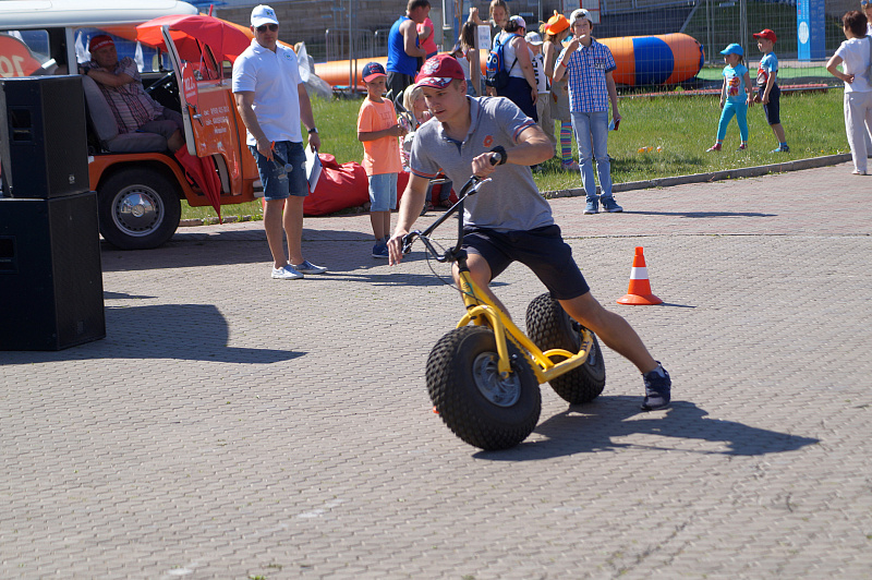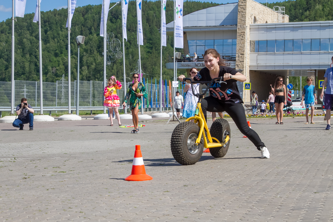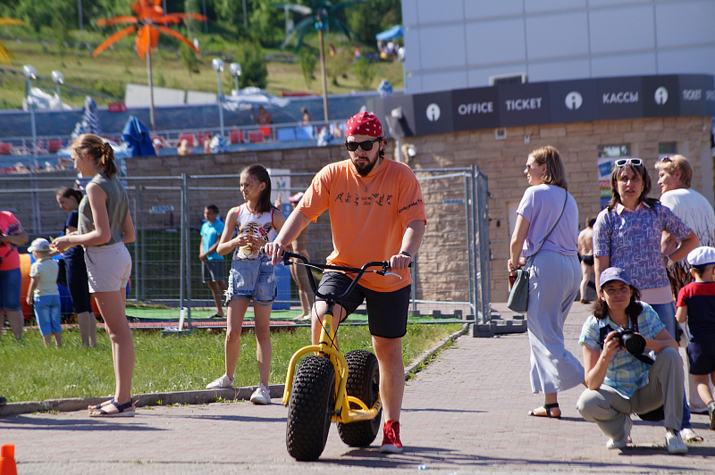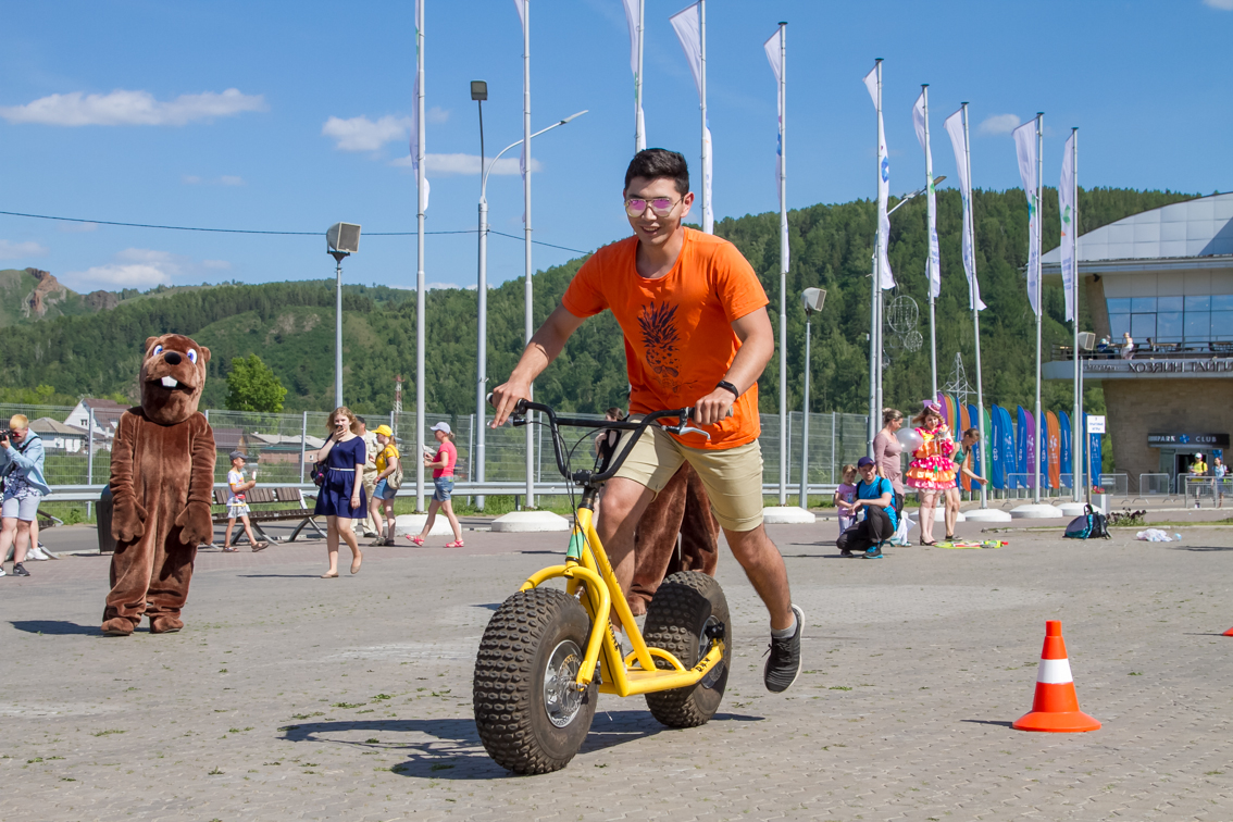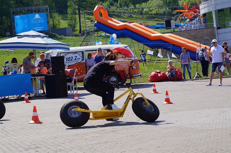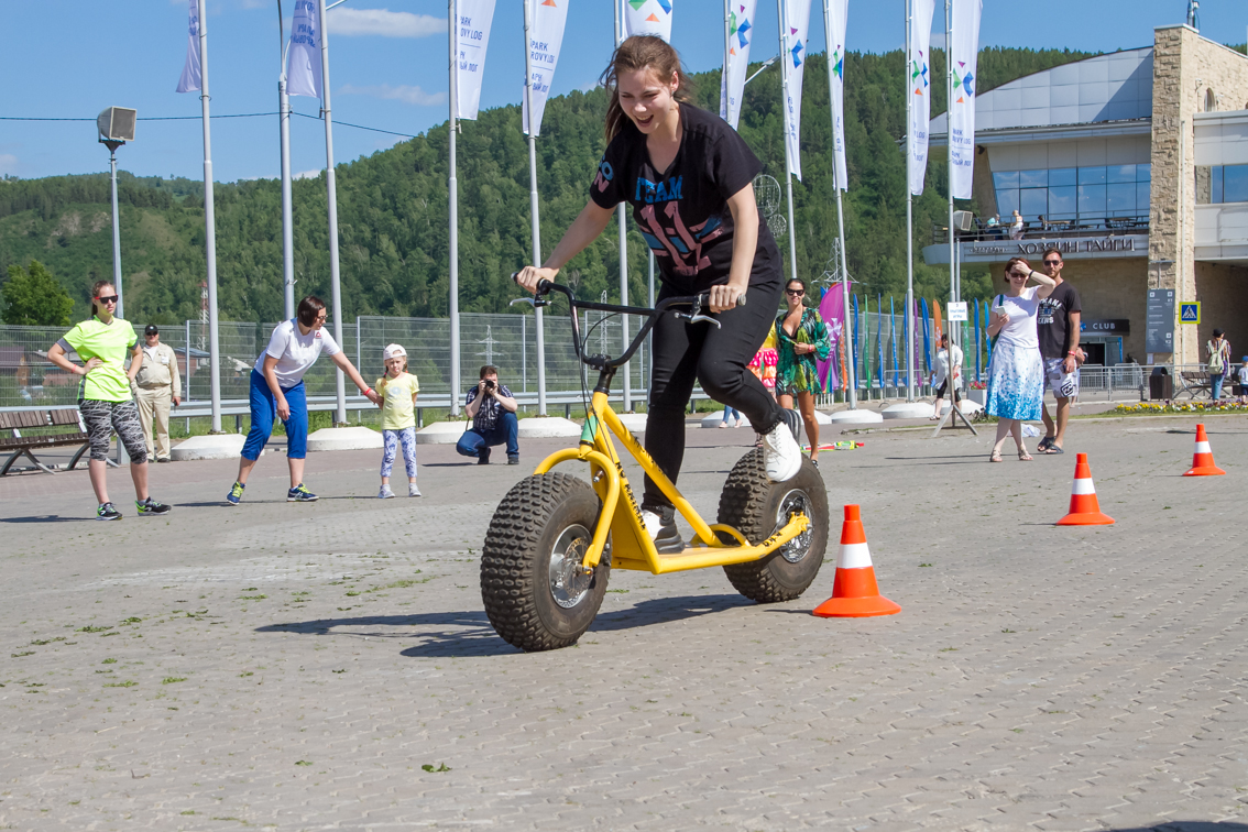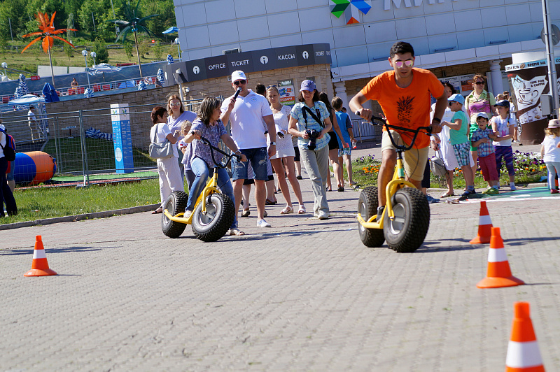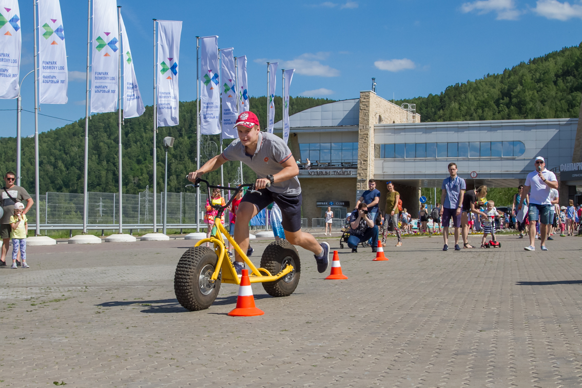 А завершился фестиваль гонками на больших монстр-самокатах. Участники, среди которых также были представители разных возрастов и полов, должны были быстрее соперника проехать круг. Битва получилась горячей, но ценные призы от Фанпарка «Бобровый лог» получили все.