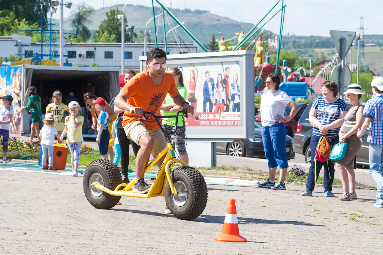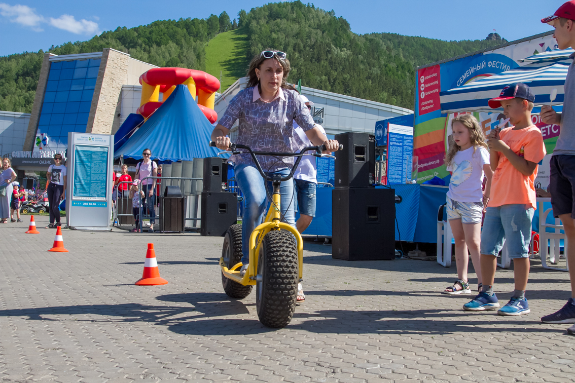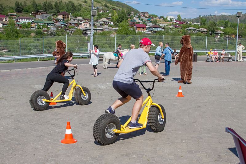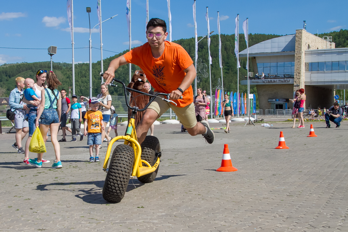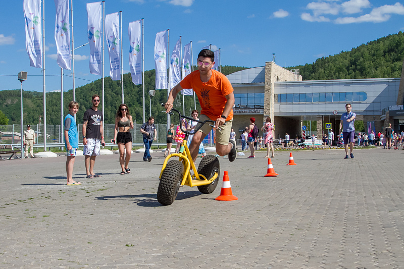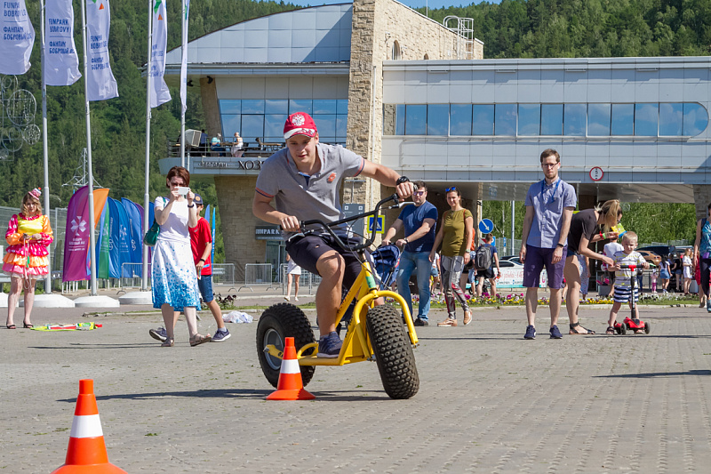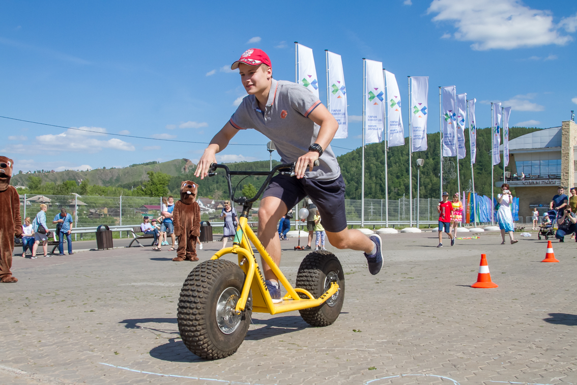 А завершился фестиваль гонками на больших монстр-самокатах. Участники, среди которых также были представители разных возрастов и полов, должны были быстрее соперника проехать круг. Битва получилась горячей, но ценные призы от Фанпарка «Бобровый лог» получили все.