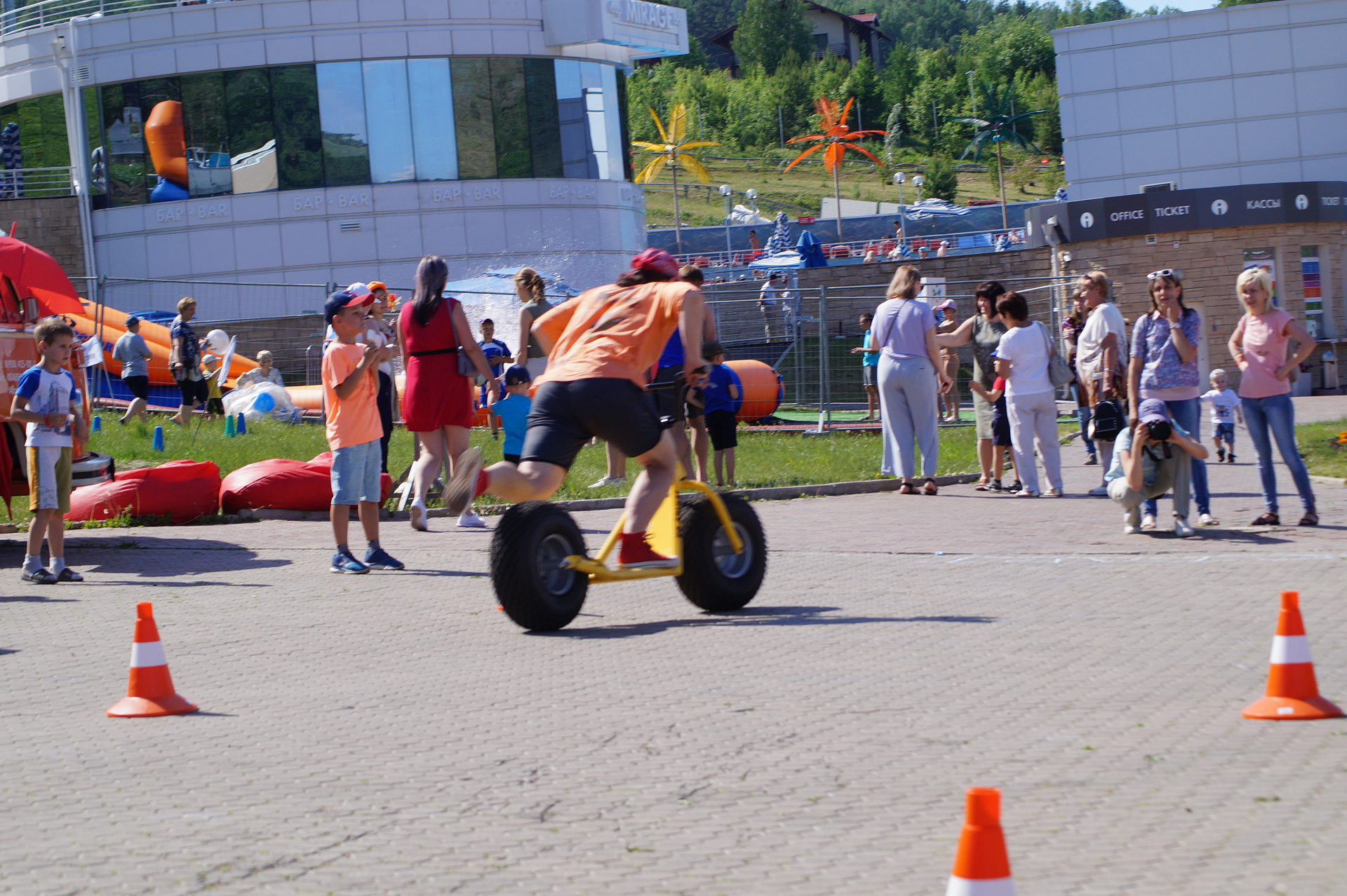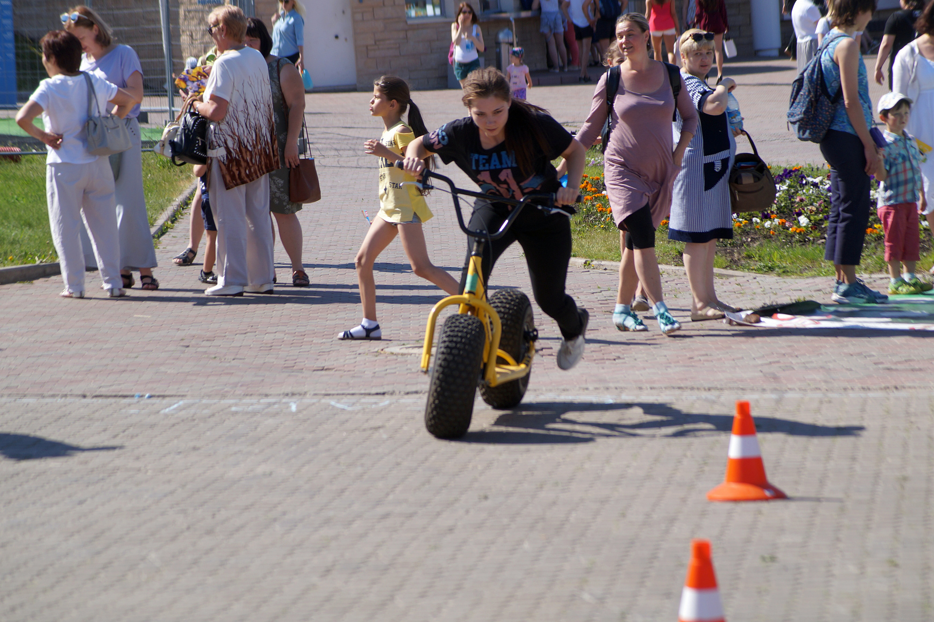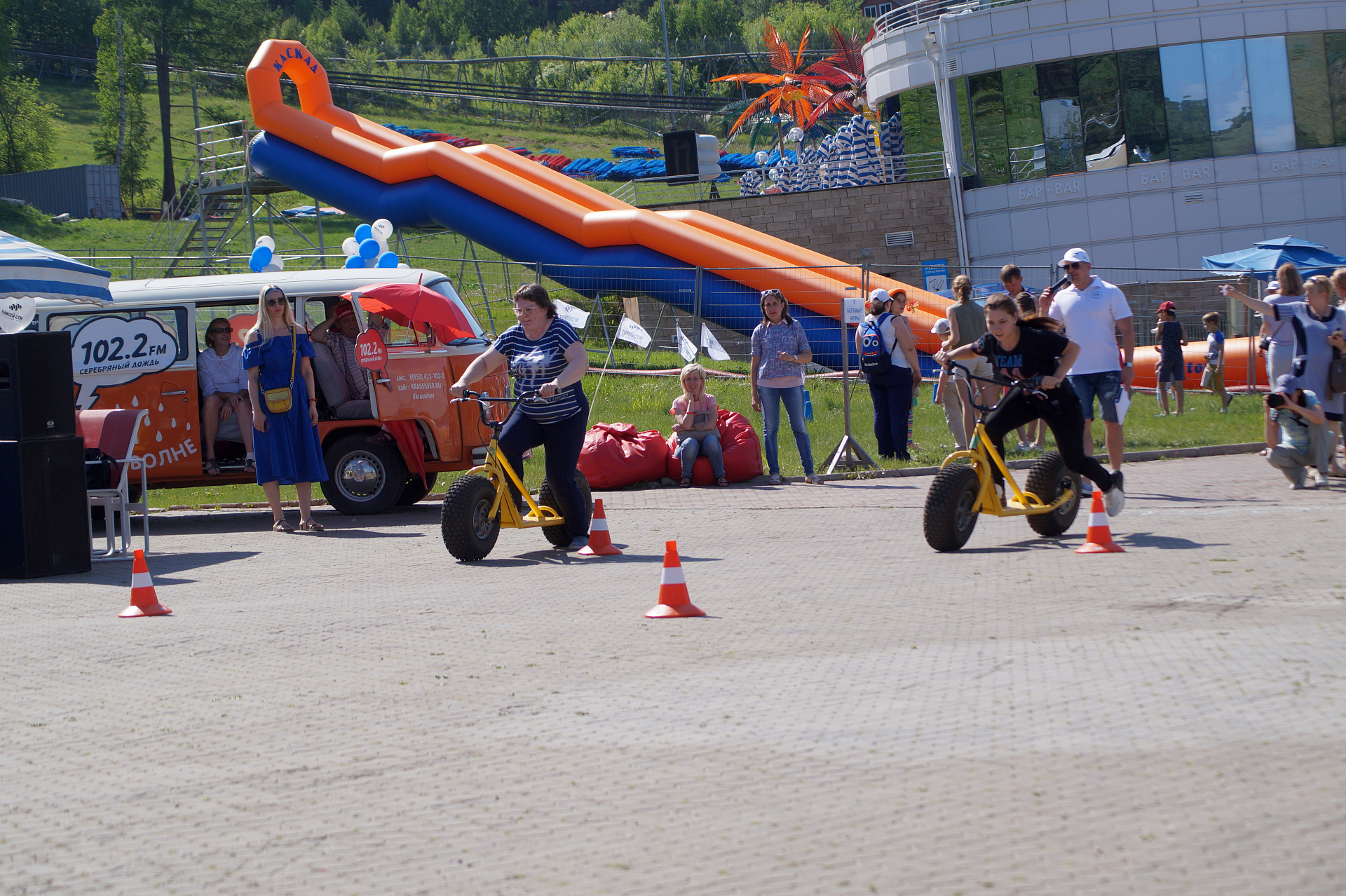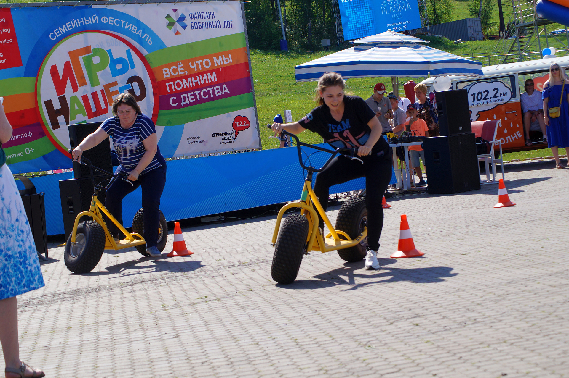 А завершился фестиваль гонками на больших монстр-самокатах. Участники, среди которых также были представители разных возрастов и полов, должны были быстрее соперника проехать круг. Битва получилась горячей, но ценные призы от Фанпарка «Бобровый лог» получили все.