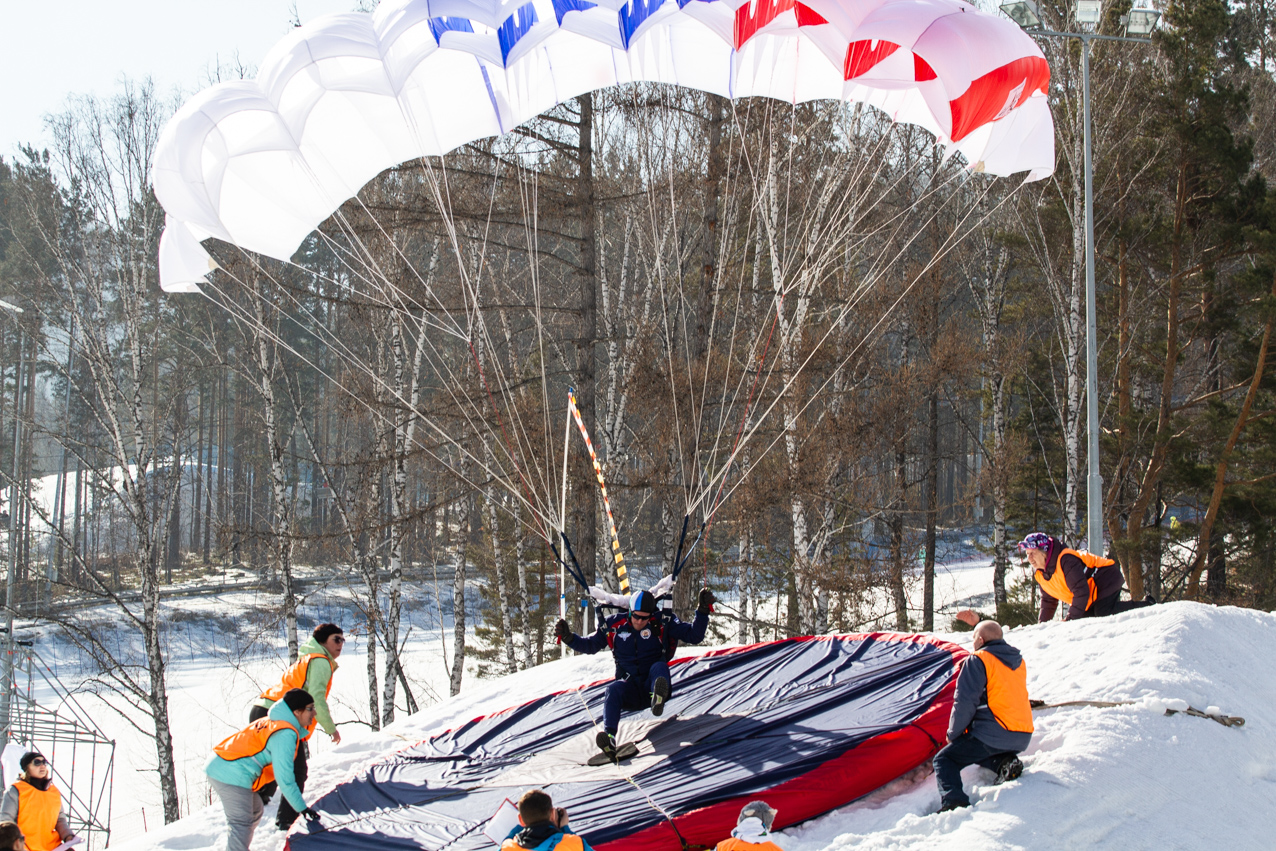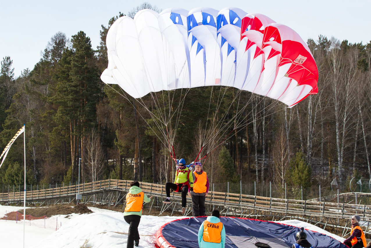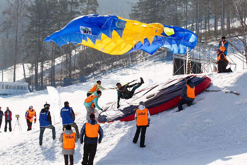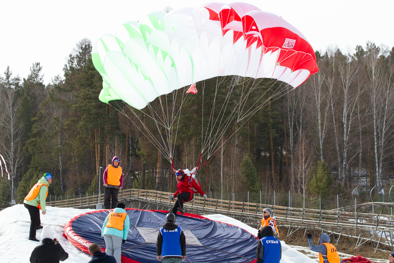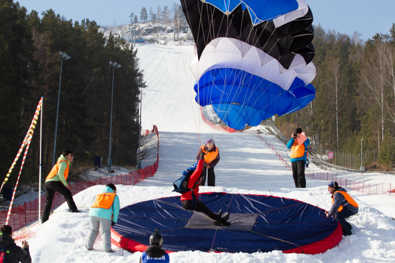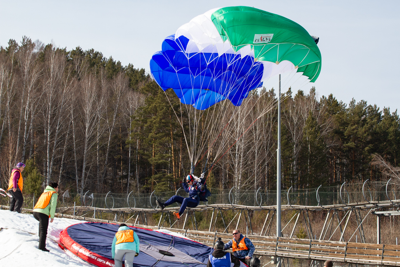 30 марта Фанпарке «Бобровый лог» состоялись заключительные соревнования первого в истории Красноярского края Чемпионата и первенства России по парашютно-горнолыжному двоеборью ПараСки (ParaSki).