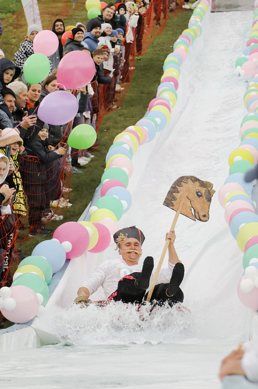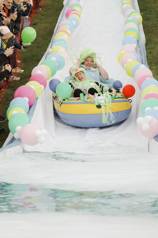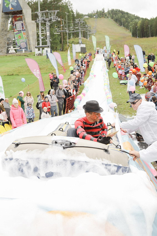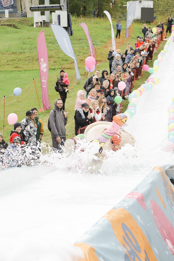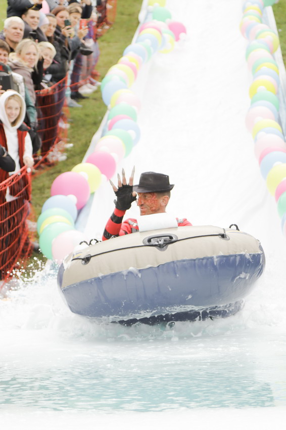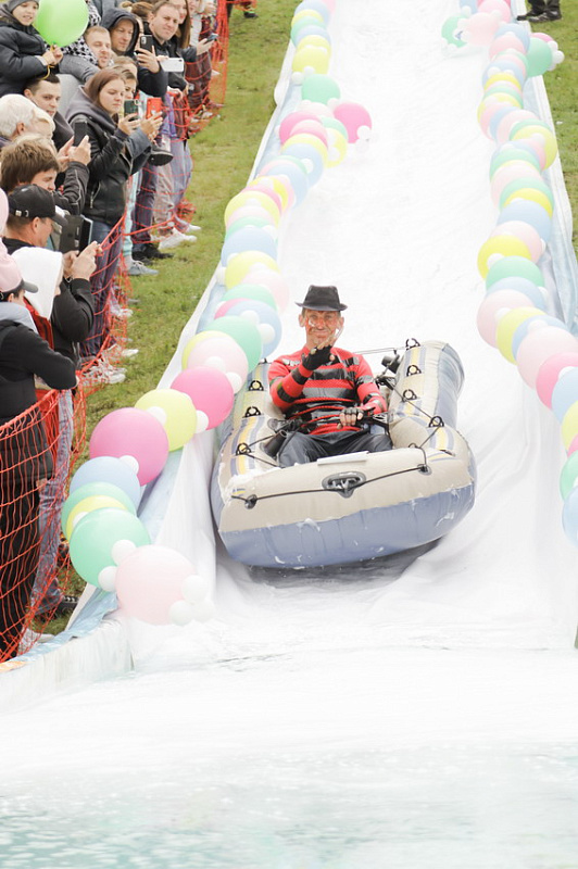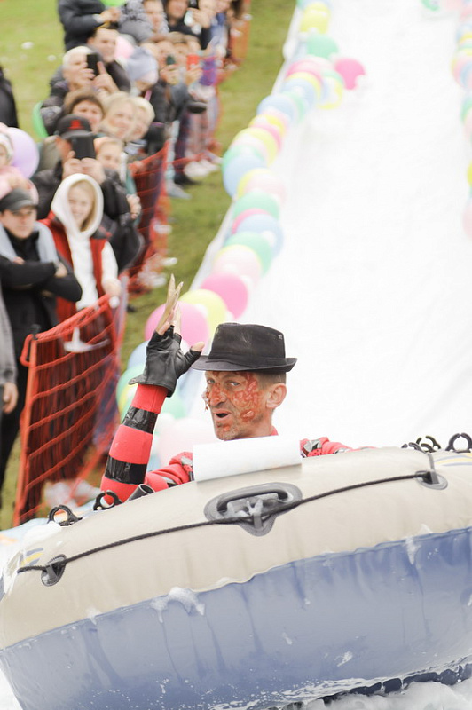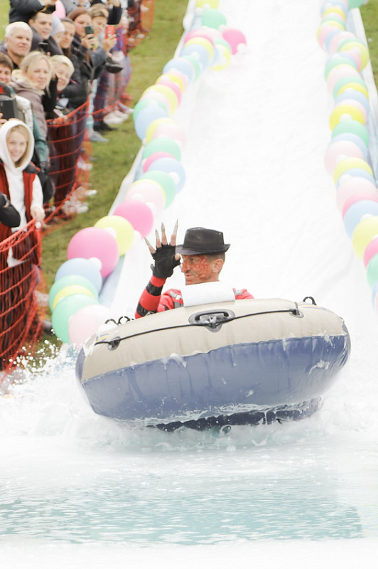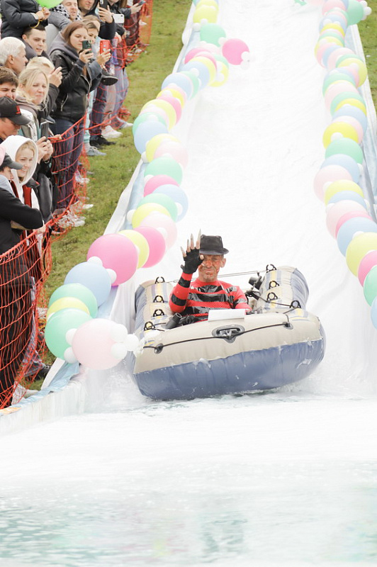 Фредди Крюгер, Дедушка Джо и Пельмень - в Фанпарк спустя два года вернулся «Летний ГорноЛужник» - традиционные шуточные соревнования по эффектным спускам в лужу.