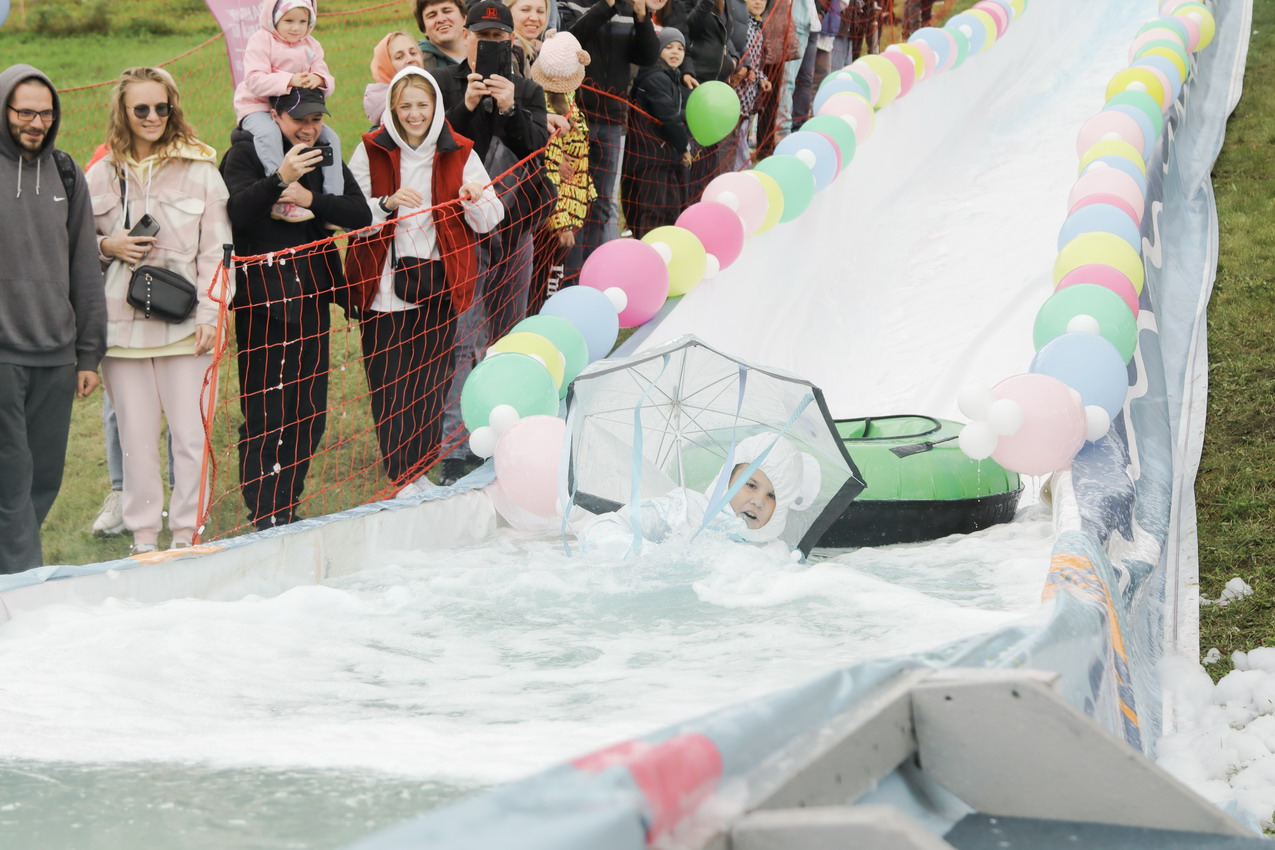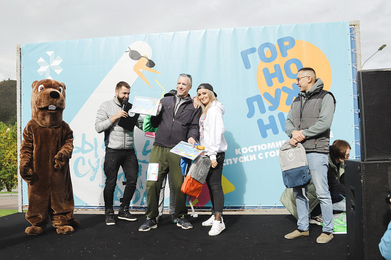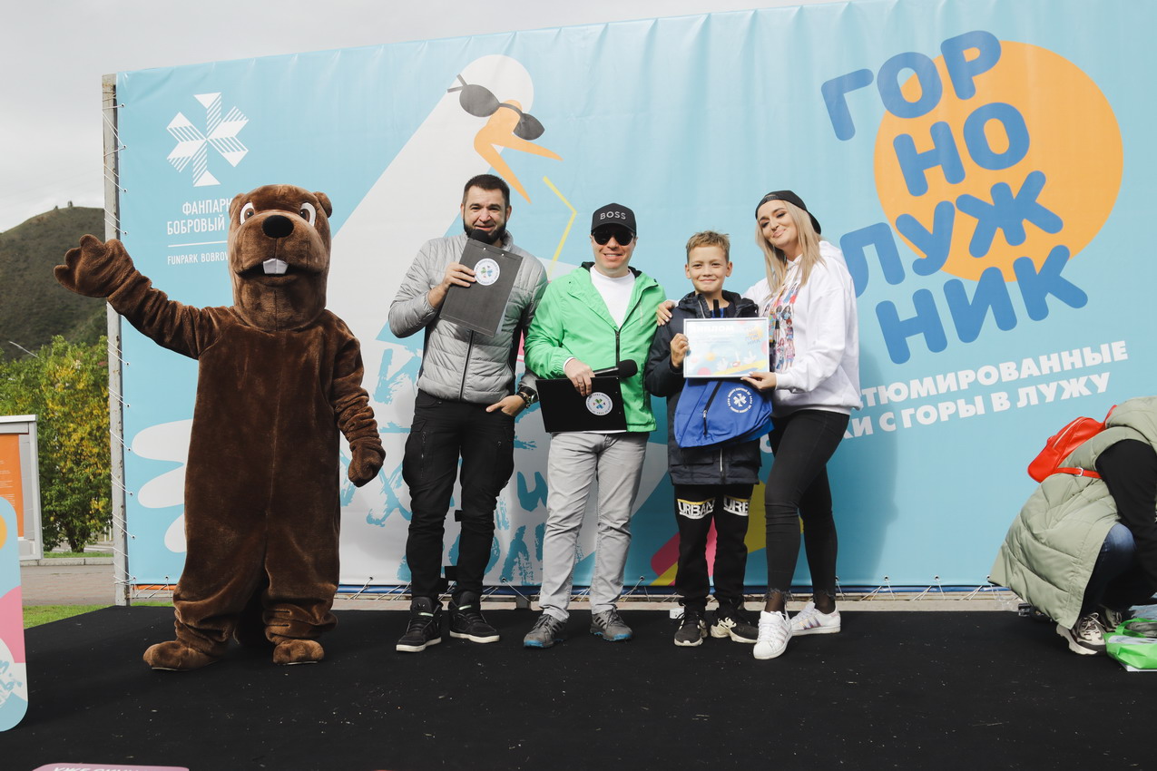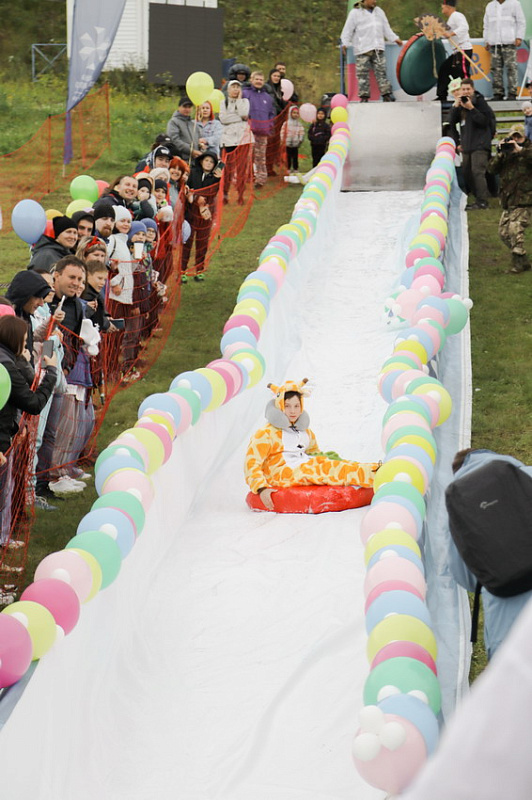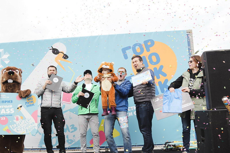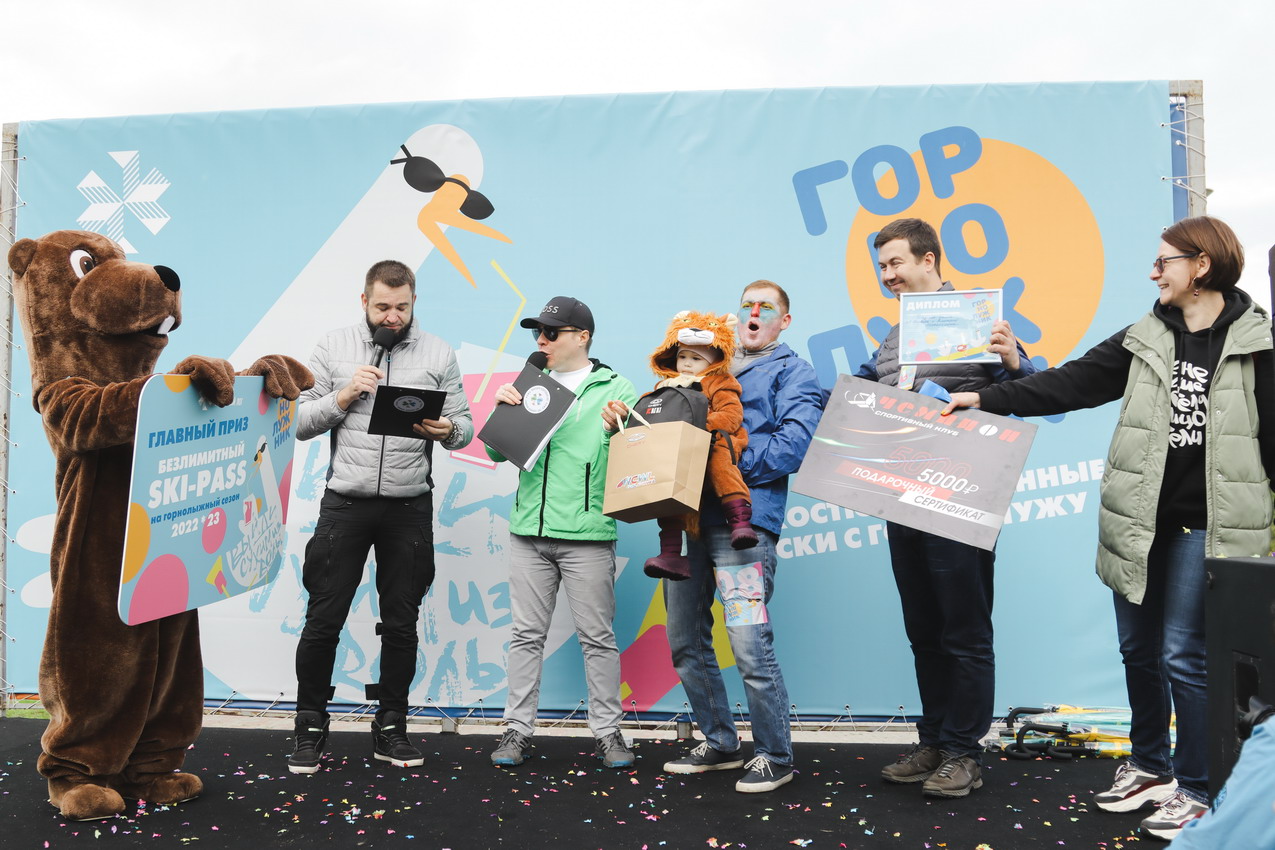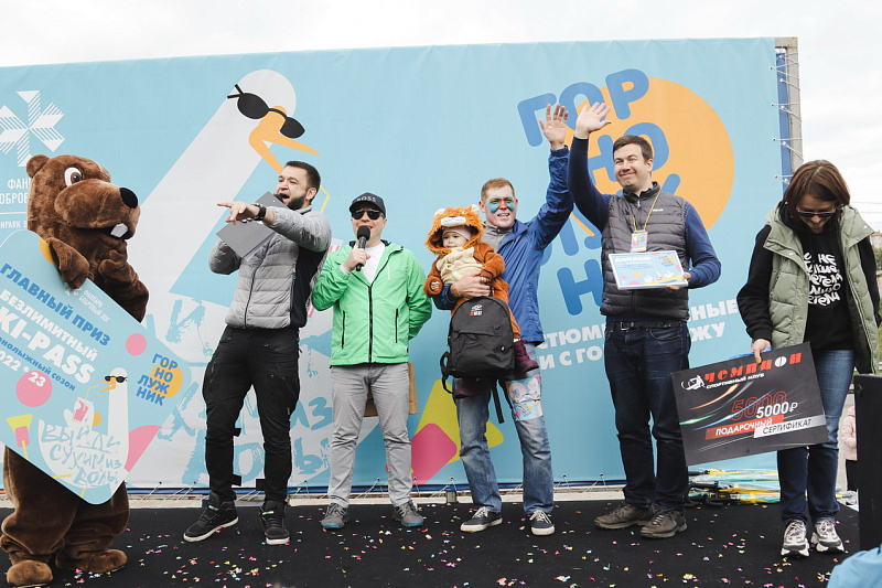 А главного приза - безлимитного сезонного ски-пасса – и звания «Абсолютный горнолужник» удостоилась команда «Рождение Симбы». В костюме Симбы вместе с папой преодолела лужу самая маленькая участница «ГорноЛужника» за все годы – 2-летняя Варвара.