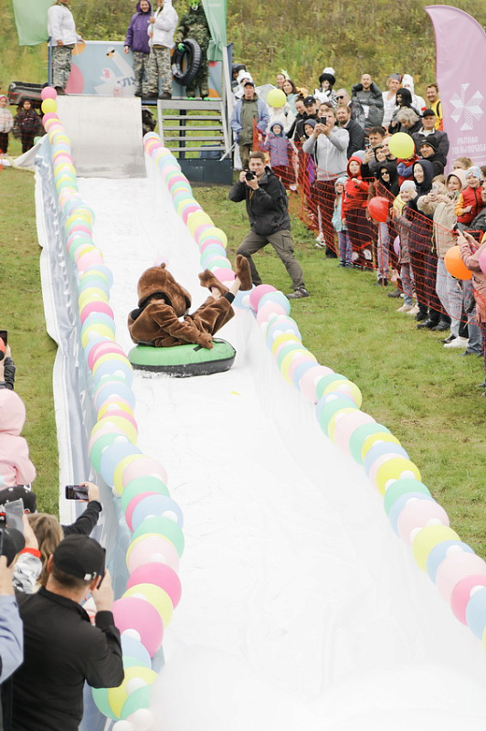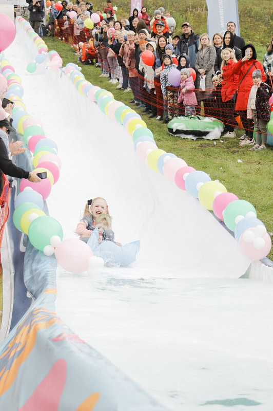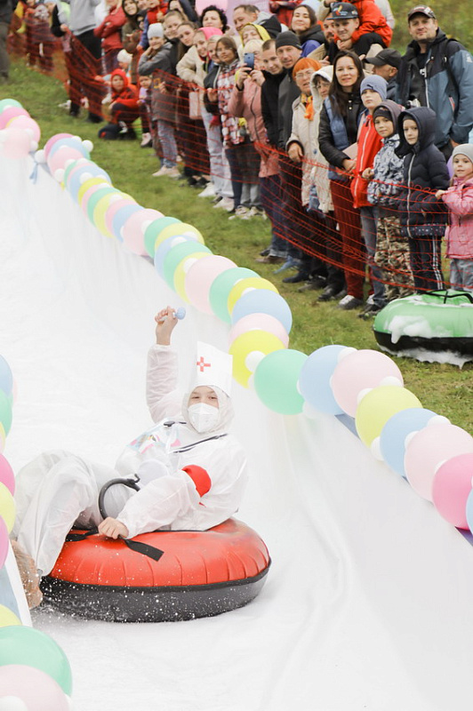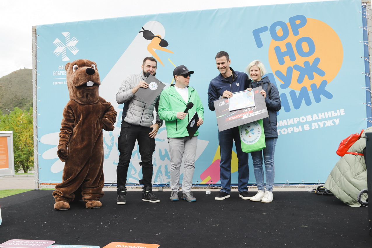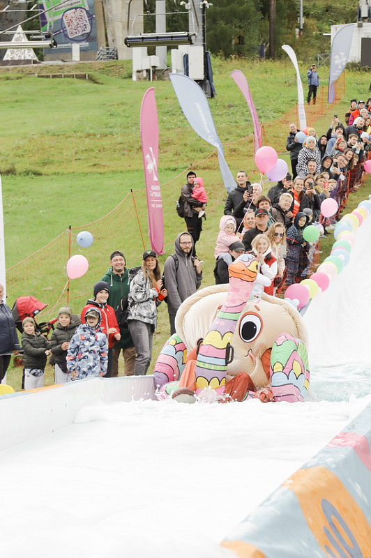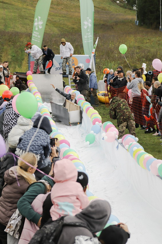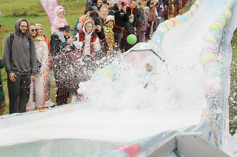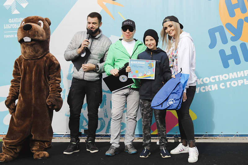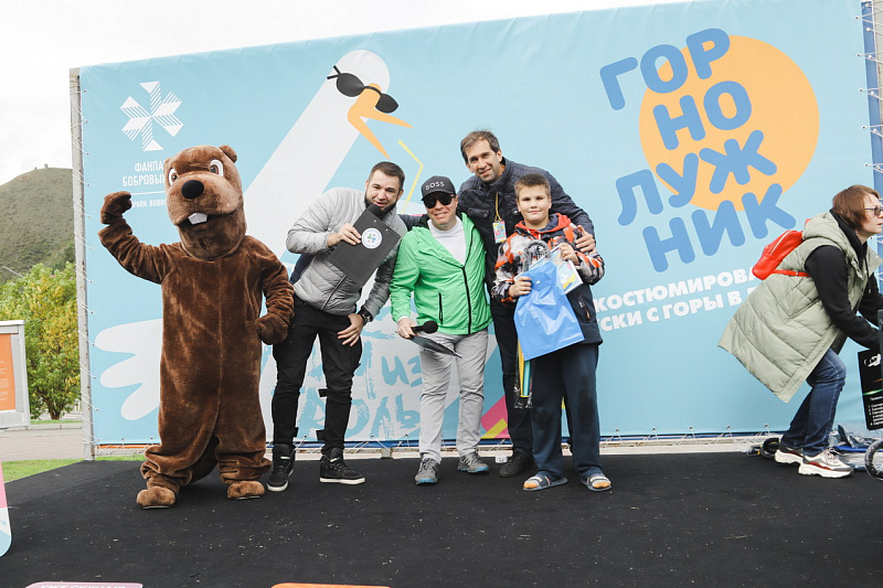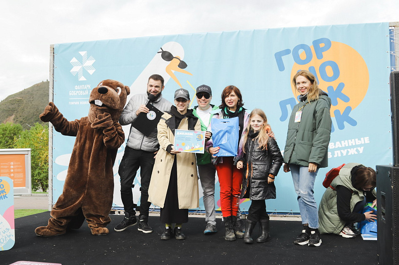 А главного приза - безлимитного сезонного ски-пасса – и звания «Абсолютный горнолужник» удостоилась команда «Рождение Симбы». В костюме Симбы вместе с папой преодолела лужу самая маленькая участница «ГорноЛужника» за все годы – 2-летняя Варвара.