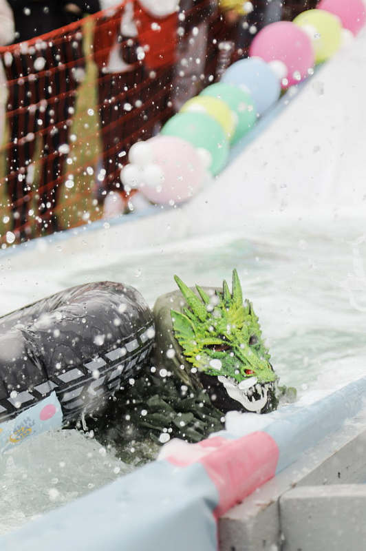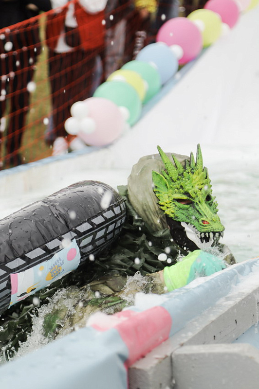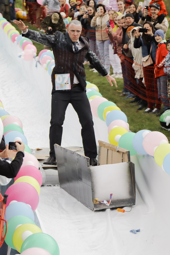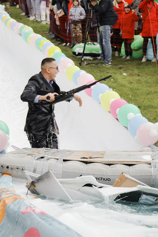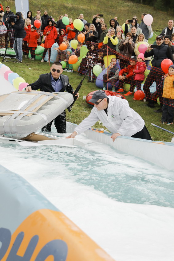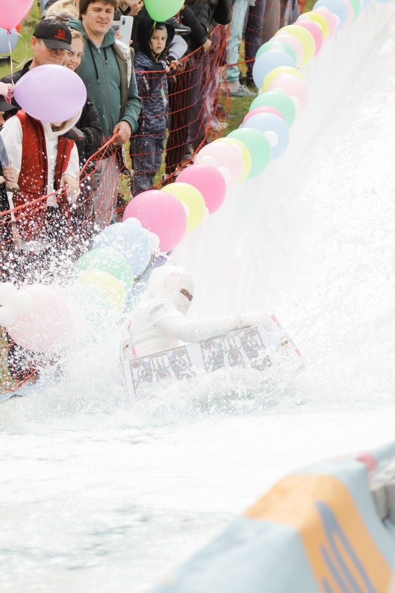 За самый эффектный спуск наградили Лихого казака, Медузу и команду «Дедушка Джо». Дедушка Джо вместе с охранником также победили в номинации «Лучшее плавсредство» - на своем надувном матрасе они соорудили настоящую трибуну для выступлений. Также в этой номинации отметились и юные участники – Мумия, спустившаяся в лужу в «саркофаге», и Жираф.
