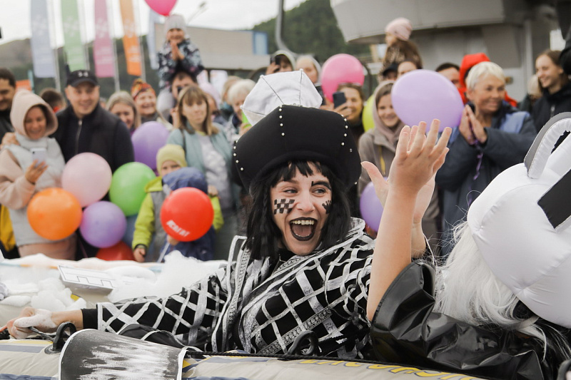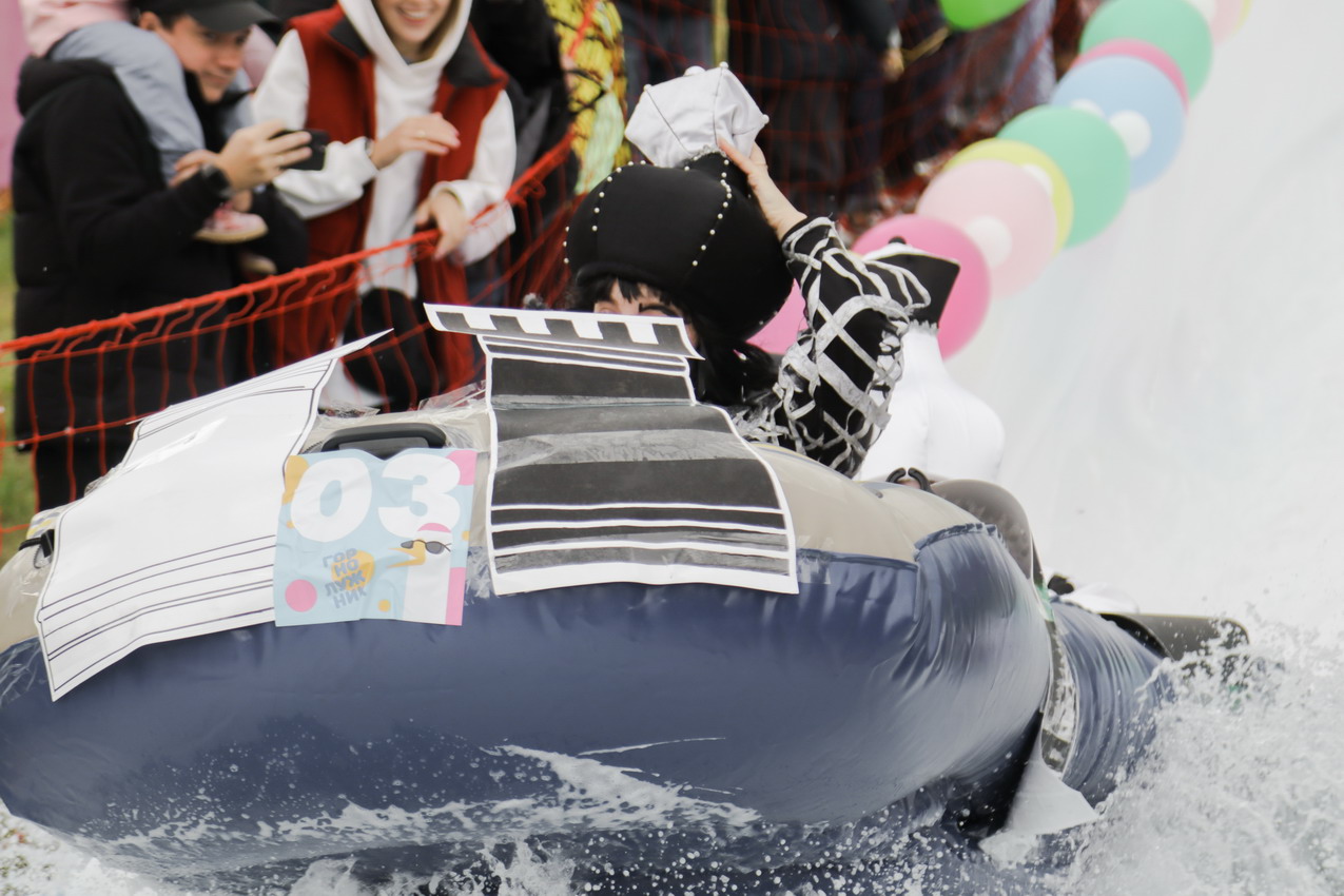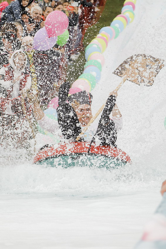 Далее на старт вышли непосредственно участники «ГорноЛужника» - взрослые и дети, команды и личники. Судьи оценивали заезды по нескольким критериям: костюм, плавсредство, эффектность спуска и количество брызг.