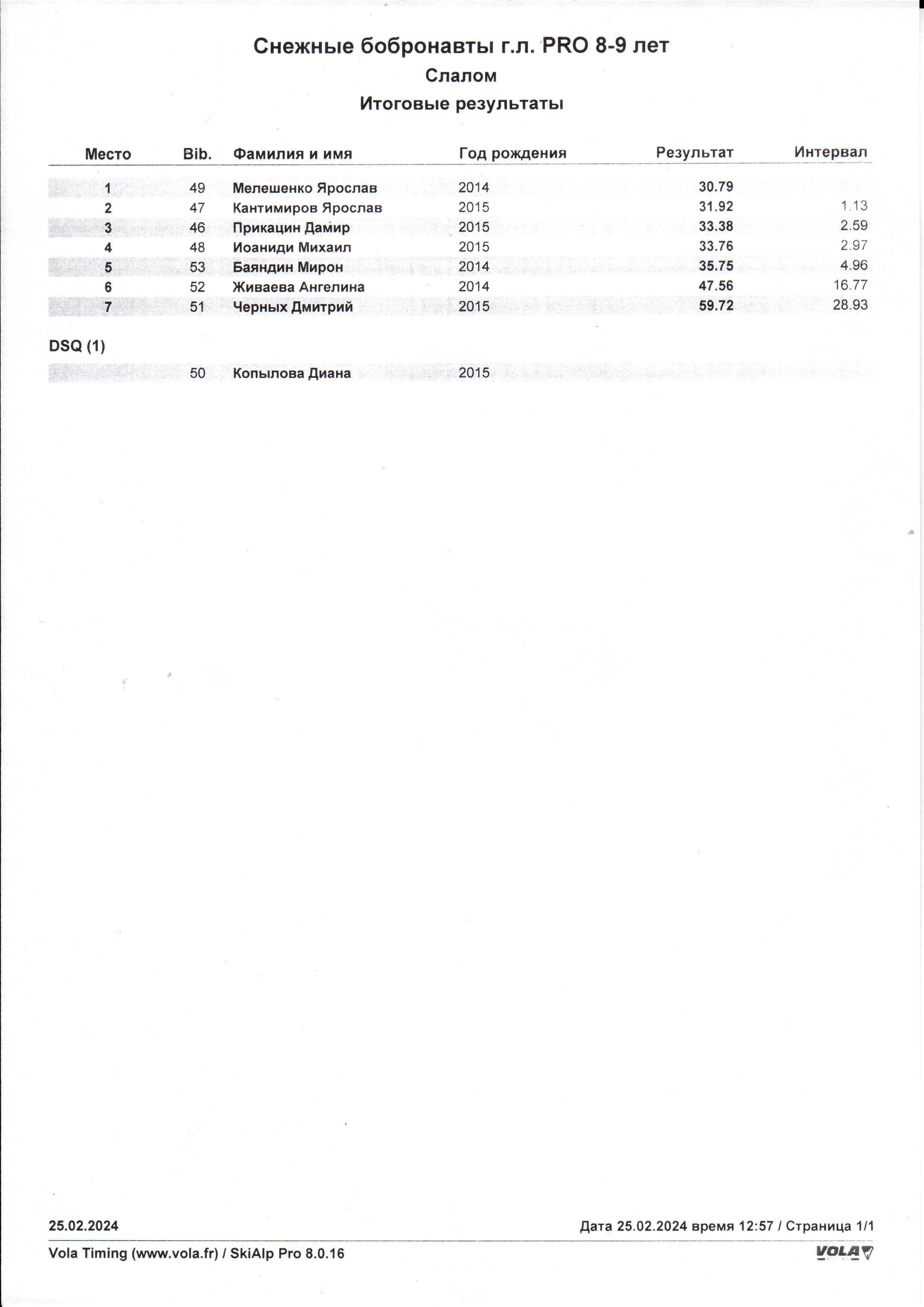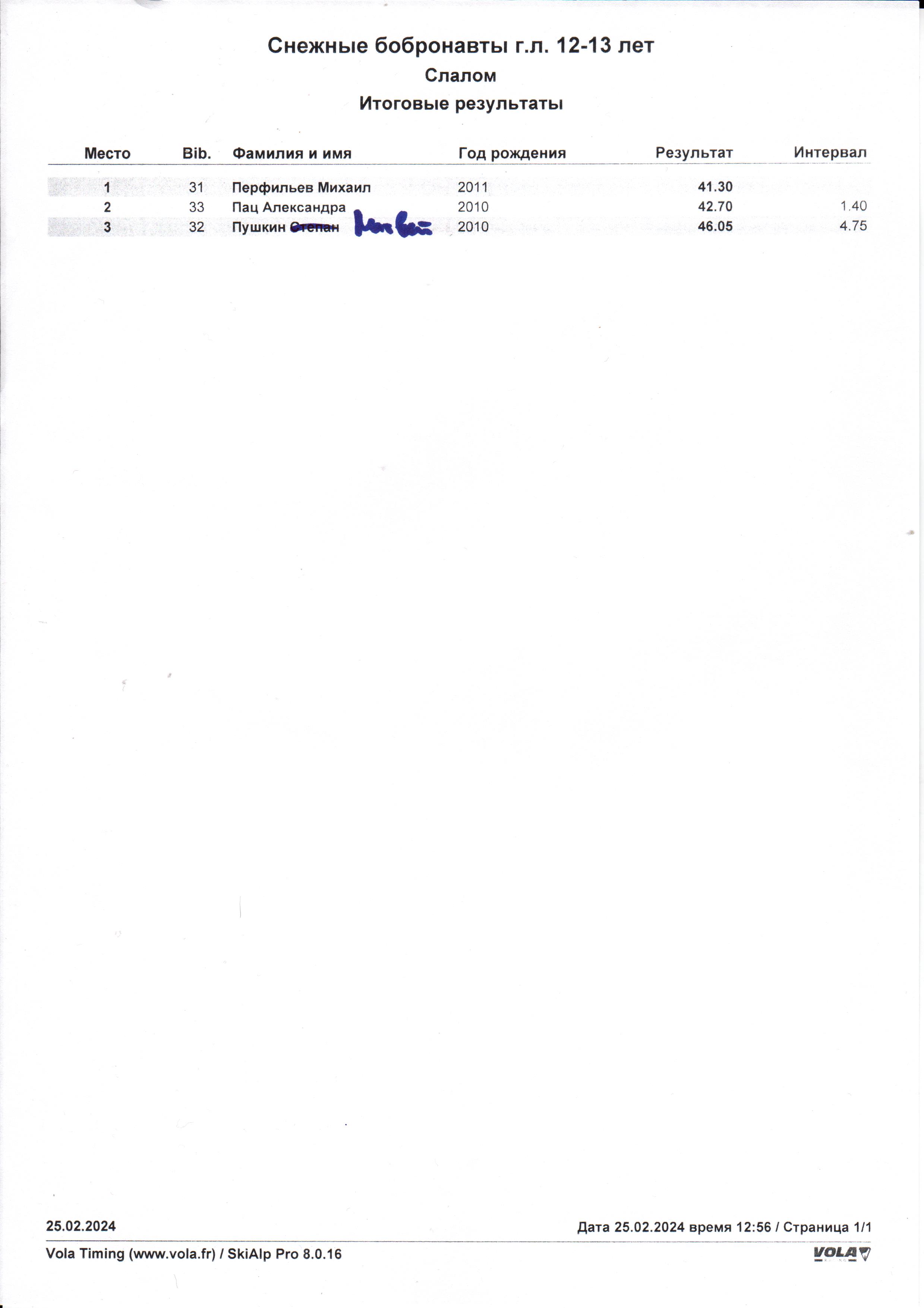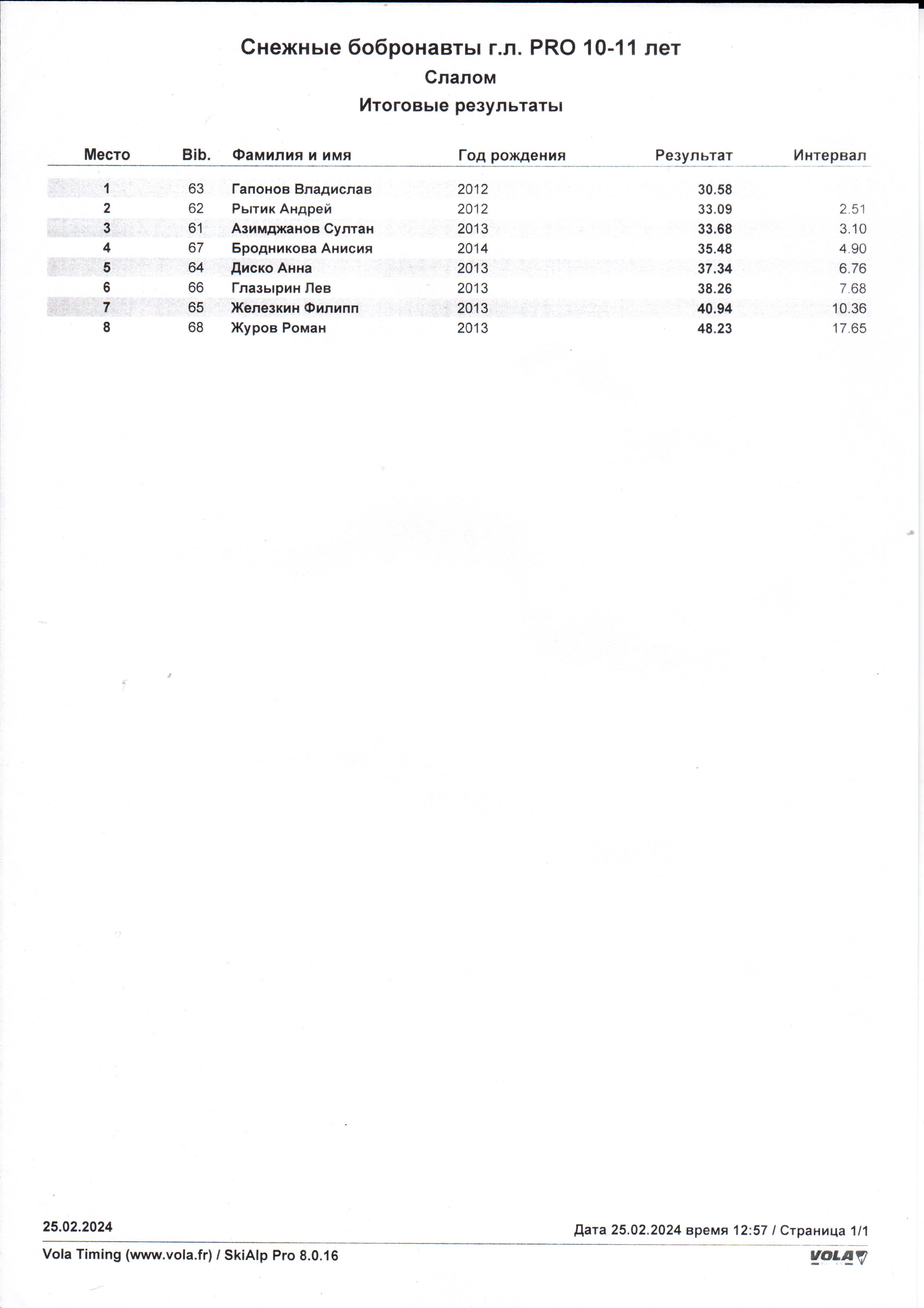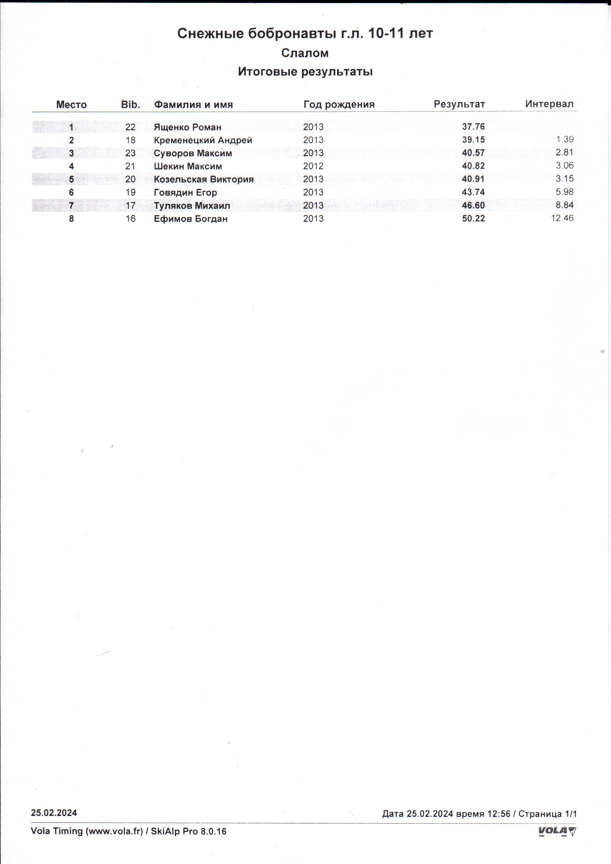 25 февраля прошли детские соревнования «Снежные бобронавты» - первый этап по горным лыжам для детей от 8 до 13 лет. На старт вышли более 30 юных горнолыжников. Лучшее время на трассе показал 12-ти летний горнолыжник Владислав Гапонов – 30.58 секунды.