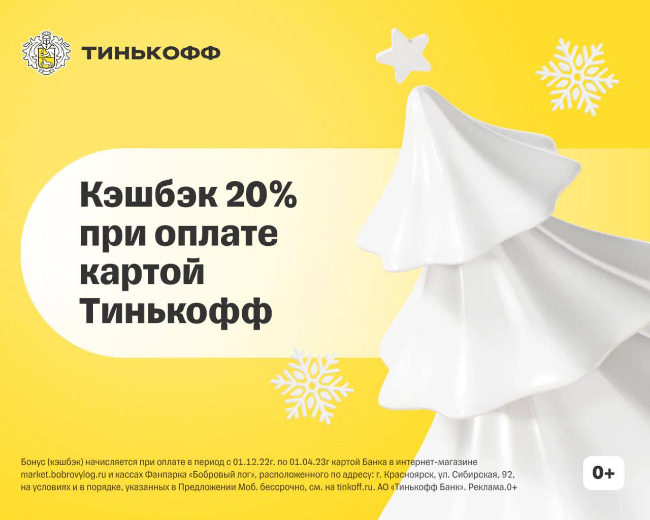 С 1 декабря при оплате услуг в кассах Фанпарка картой Тинькофф — кэшбэк 20%!