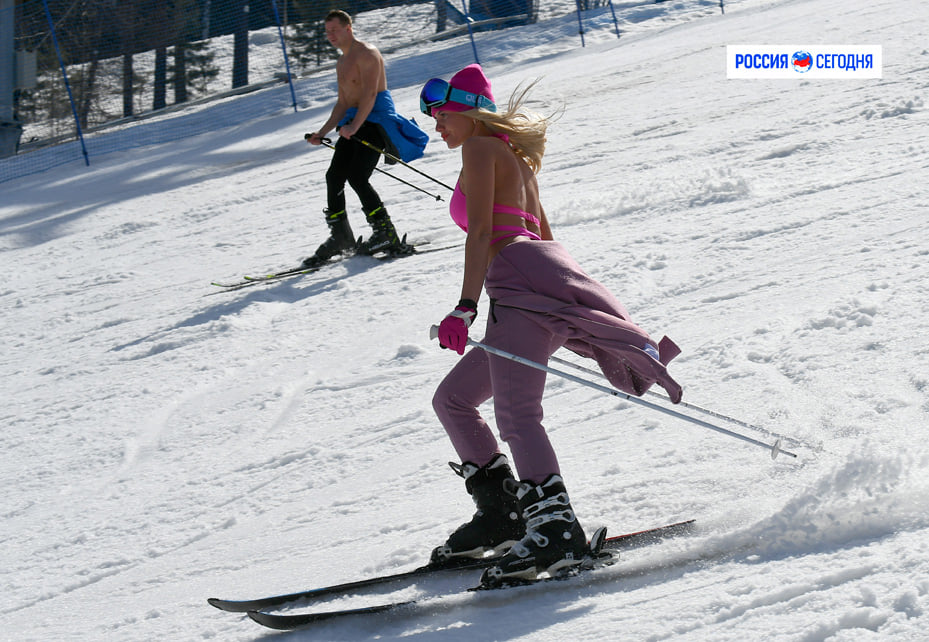 Праздник весны в фанпарке "Бобровый лог". Красноярский лыжный курорт стал первым не только в России, но и во всём бывшем СССР, где по поводу окончания зимнего горнолыжного сезона начали устраивать шуточный фестиваль "Горнолужник", когда любители лыж и снежных досок разгонялись на остатках снежного покрова у подошвы горы и оказывались в 25-метровом бассейне с водой - той самой "горной луже", откуда и пошло название "Горнолужник". Были удачно придуманы несколько видов состязаний - на самые большие брызги, мини-бикини, выйти сухим из воды (проехать всю "лужу" и не упасть в неё) и др.. Всё это вместе принесло "Горнолужнику" такую большую популярность, что забава стала чуть ли не главным событием всего сезона. У красноярцев идею переняли многие города и страны. Аналогичные фестивали стали устраивать чуть не на каждом горнолыжном комплексе - в Сочи, в Алма-Ате, в Ленинградской области, в Белоруссии и т. д. И вот, из-за окаянного коронавируса мы уже второй год подряд лишены удовольствия участвовать или наблюдать этот праздник. Однако, сознательность и дисциплинированность персонала "Бобрового лога", который для соблюдения предписаний санитарных служб и властей, отказался от шоу, поскольку обеспечить безопасную дистанцию между зрителями на "Горнолужнике" нереально. А вот "конкуренты" в других городах между нераспространением "ковидлы" и привлечением максимального числа посетителей выбрали последнее. Только в прошедшие выходные аналогичные "Горнолужнику" праздники состоялись на "Красной поляне" в Сочи и на курорте "Игора" в Ленинградской области.