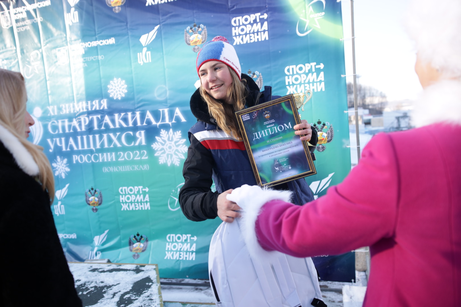 Медали победителям и призерам соревнований вручил министр спорта Красноярского края Денис Петровский. Также победители XI зимней Спартакиады учащихся России получили подарки от Фанпарка «Бобровый лог».