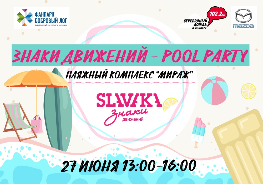 Встречаемся каждую среду с 13:00 до 16:00 в теплую солнечную погоду. *Переносы pool party из-за погодных условий и актуальная информация будут анонсироваться на 102, 2 FM и в официальных аккаунтах в социальных сетях: Группа ВКонтакте "Серебряный Дождь - Красноярск" Facebook «Серебряный Дождь – Красноярск», Instagram @krassilver