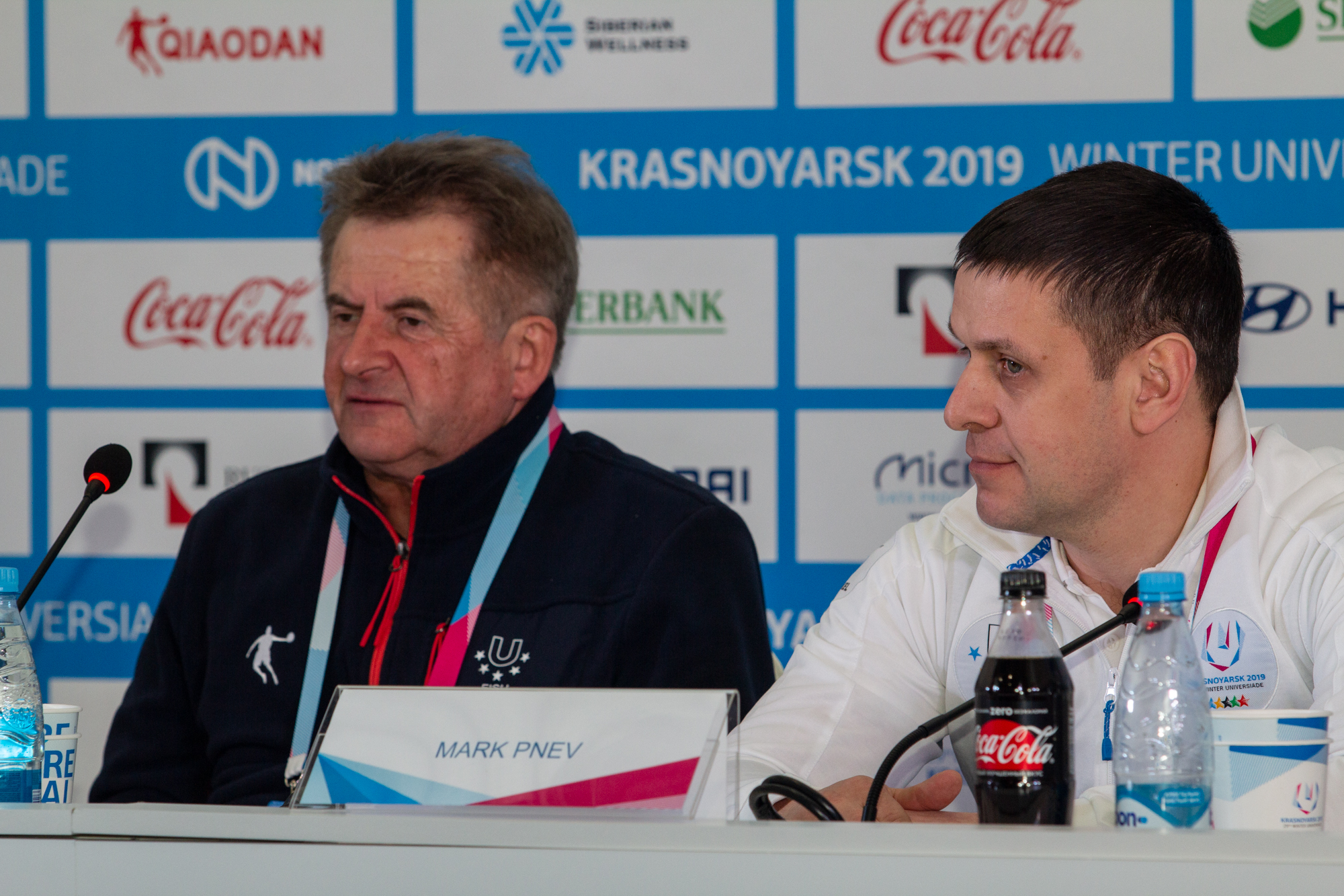 Журналисты федеральных и красноярских СМИ увидели процесс инъекции горнолыжной трассы, стали свидетелями официальной тренировки в дисциплине супер-гигант и получили первые комментарии от спортсменов Зимней универсиады-2019. Конечной точкой медиа-экскурсии стала пресс-конференция с участием представителей Международной федерации университетского спорта (FISU), судейской коллегии и организаторов соревнований.