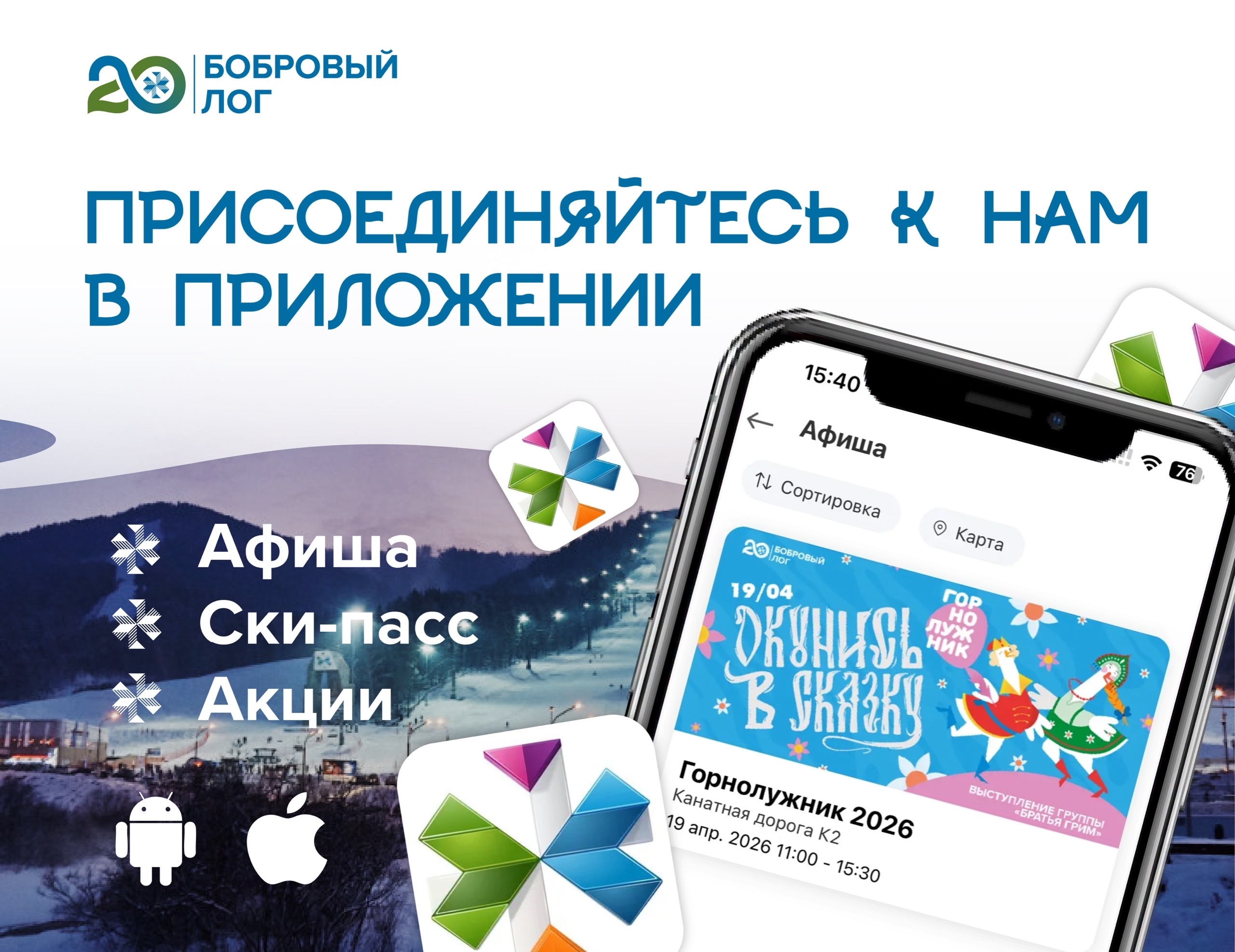 Друзья, чтобы отдых в «Бобровом логе» стал ещё удобнее, скачайте приложение Фанпарка.