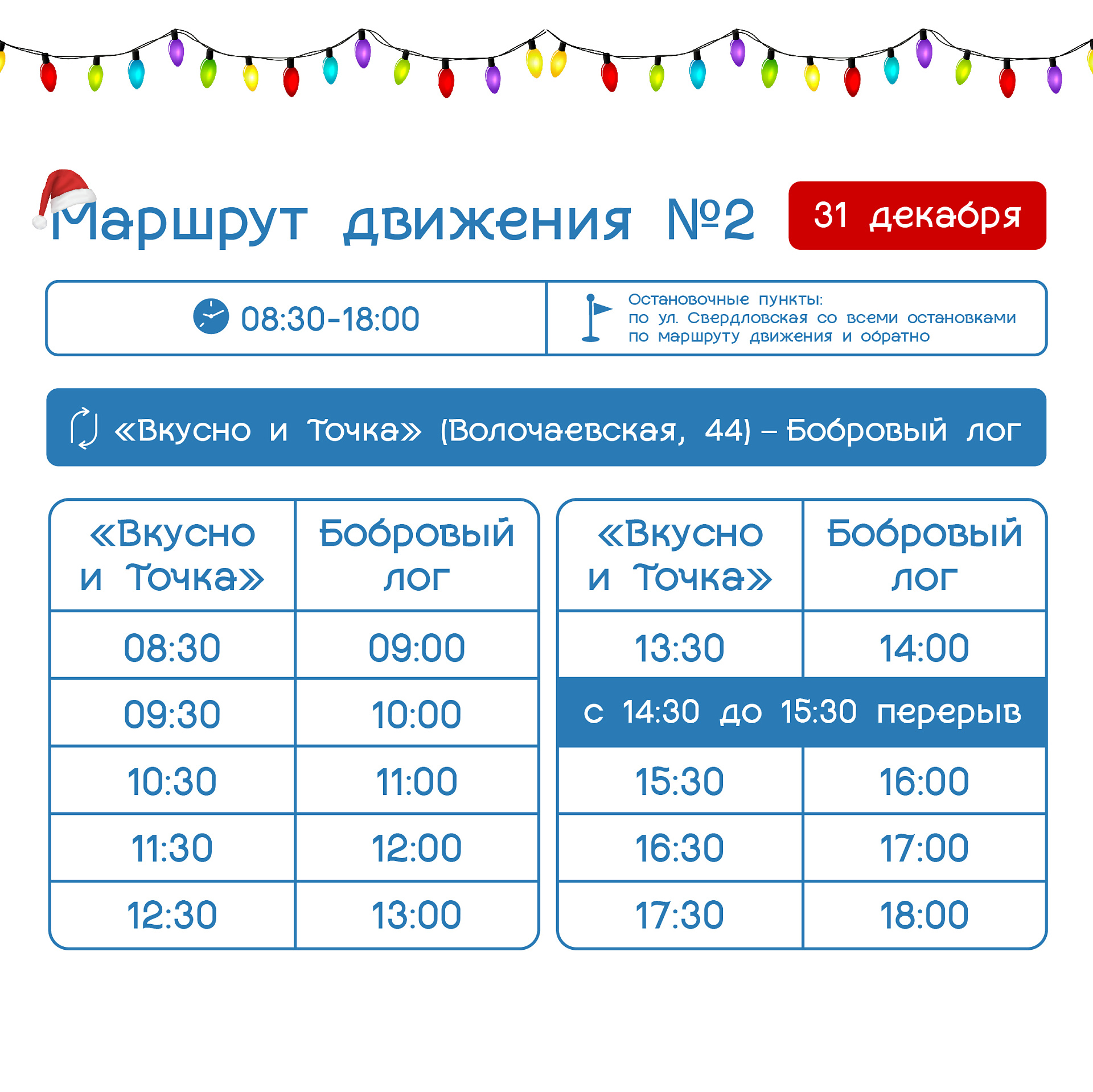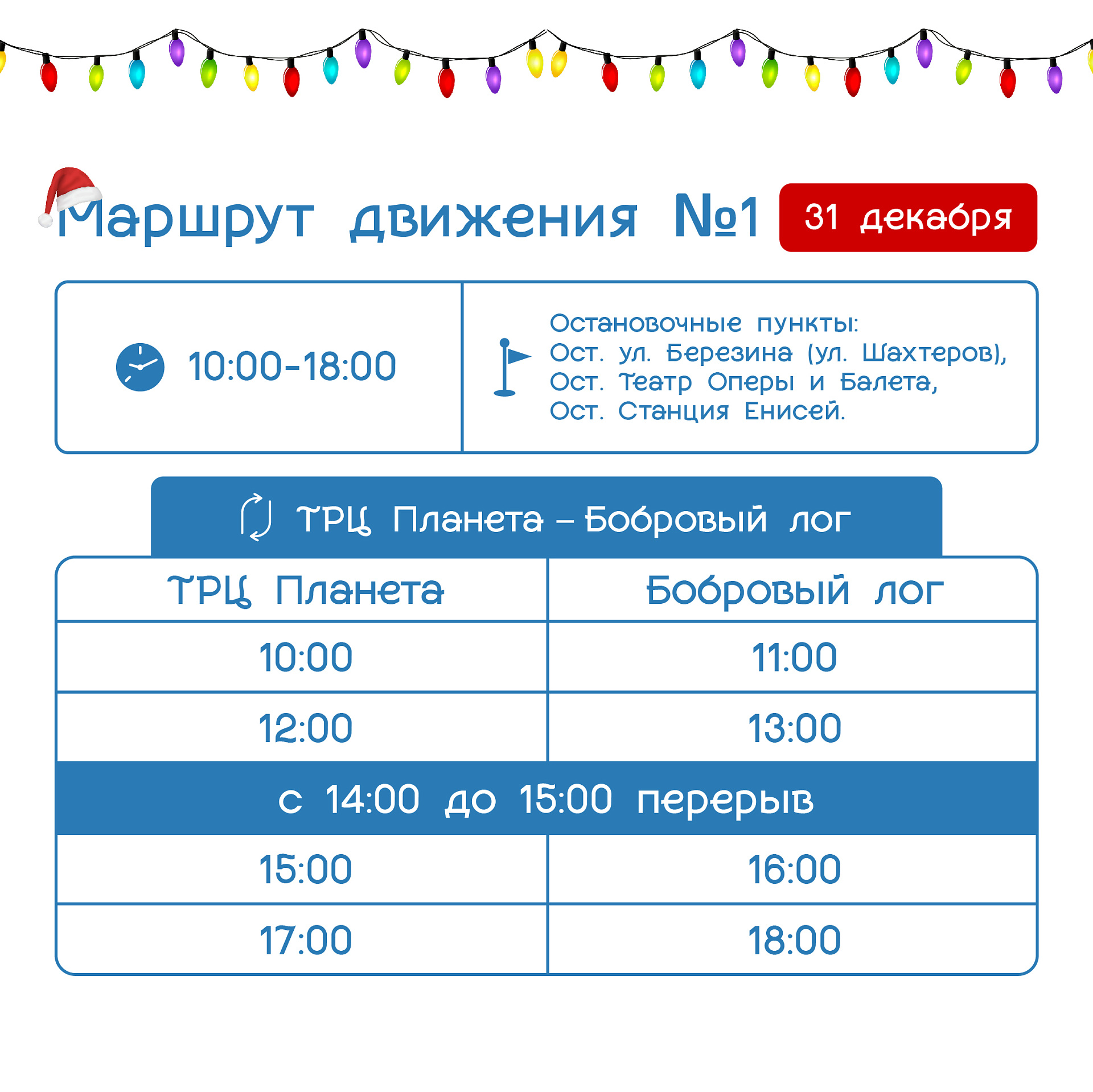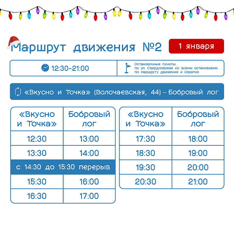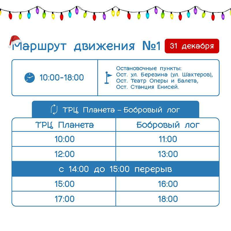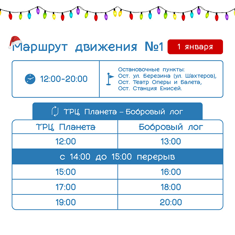 Расписание бесплатных шаттлов в новогодние каникулы