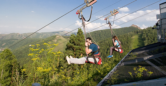 Напомним, «Зипрайдер» - это полет с вершины склона К2 в специальном снаряжении на тросе протяженностью 1000 метров со скоростью до 90 км/час.