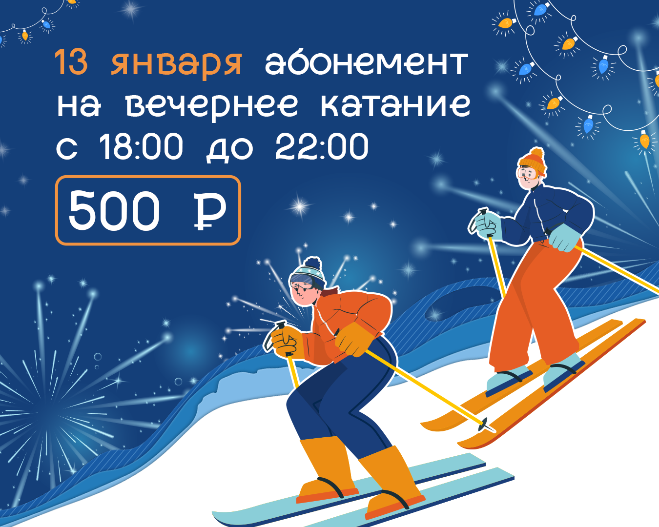 Только в этот день абонемент на вечернее катание с 18:00 до 22:00 стоит всего 500 рублей.