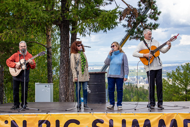 Для красноярцев и гостей города работали сразу три концертные площадки под открытым небом: главная сцена, «Народная – гостевая» (нижняя станция подъемника К1), «Два поколения – два стиля» (вершина подъемника К1). На мероприятии выступали городские и краевые народные творческие коллективы, барды и кавер-группы. А хедлайнером фестиваля стал Концертный хор из Санкт-Петербурга под руководством Владимира Беглецова. Зрители услышали в исполнении хора a cappella прекрасные композиции от Баха до группы Queen и Майкла Джексона.