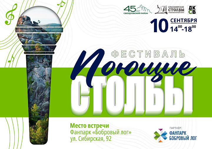 В минувшую субботу на территории Фанпарка «Бобровый лог» состоялся фестиваль «Поющие Столбы», приуроченный к 45-летию Свердловского района города Красноярска.