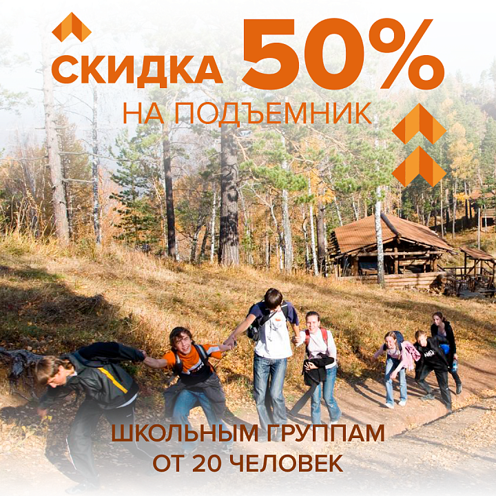 В будние дни дарим скидку 50% на подъемник организованным школьным группам от 20 человек!
