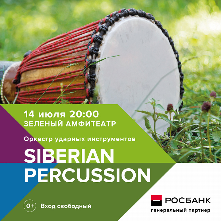 14 июля в 20:00 «Зеленый амфитеатр» распахнет свои лесные кулисы концертом «Дыхание природы» в исполнении оркестра ударных инструментов «Siberian Percussion» под руководством Сергея Газизуллина.