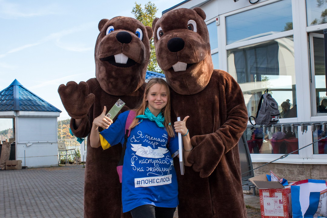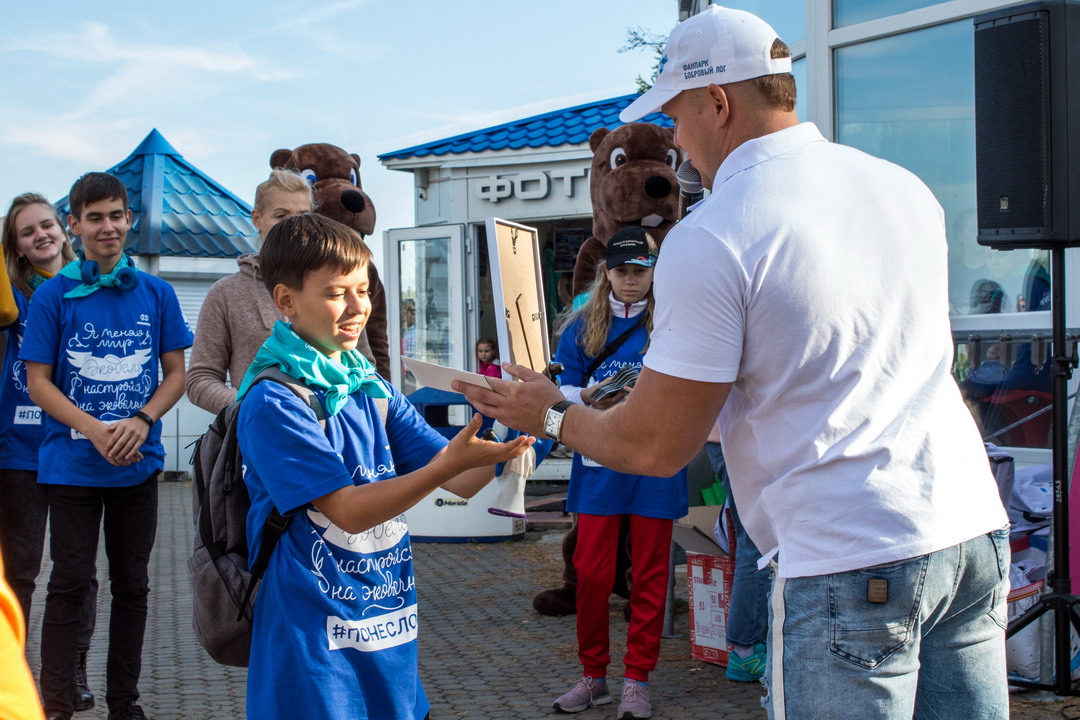 «Очень символично, что вы в волонтерских футболках «ПонесЛось», потому что ровно год назад 60 добровольцев экомарафона «ПонесЛось» сделали красивую входную группу в Заповедник со стороны Фанпарка «Бобровый лог»
