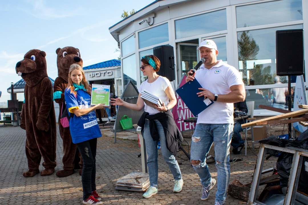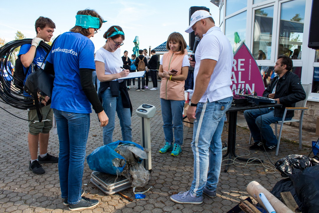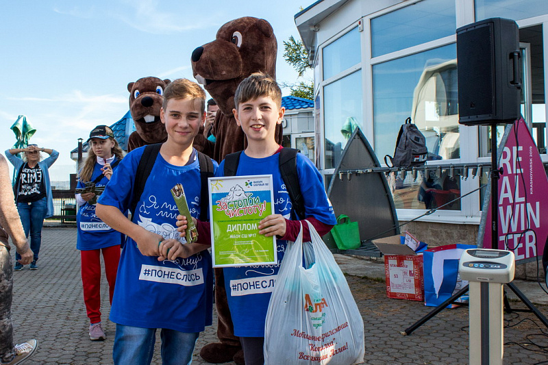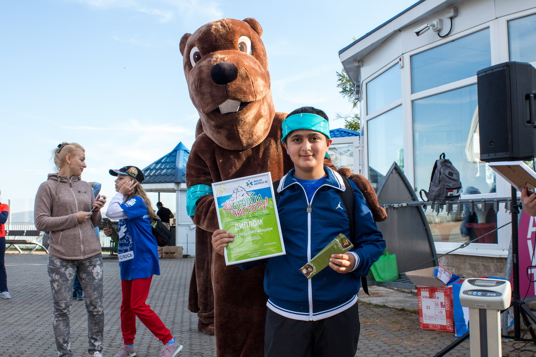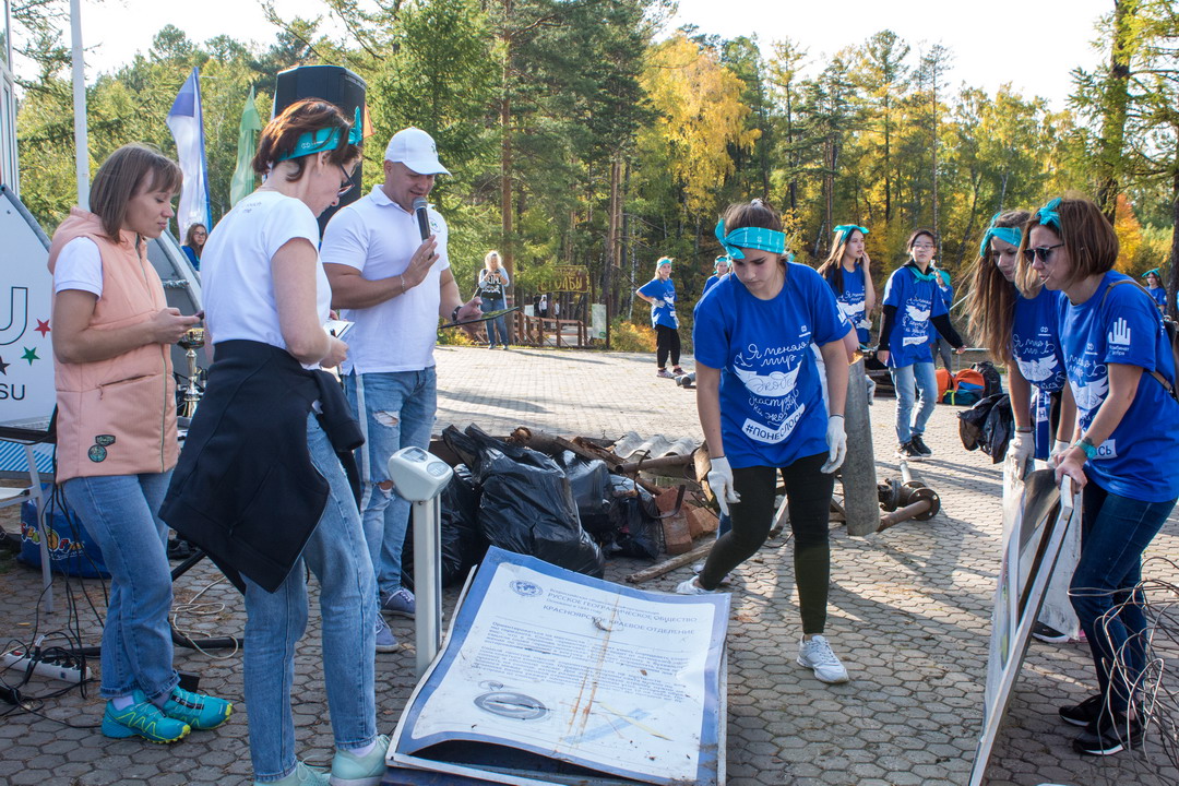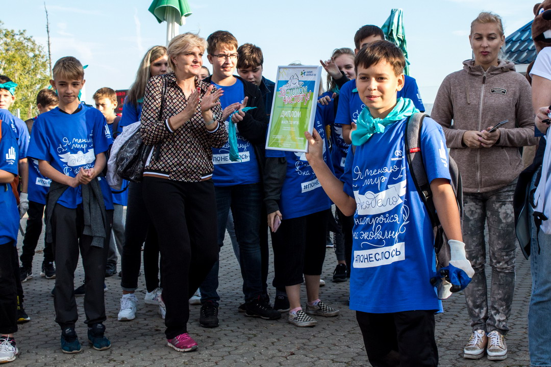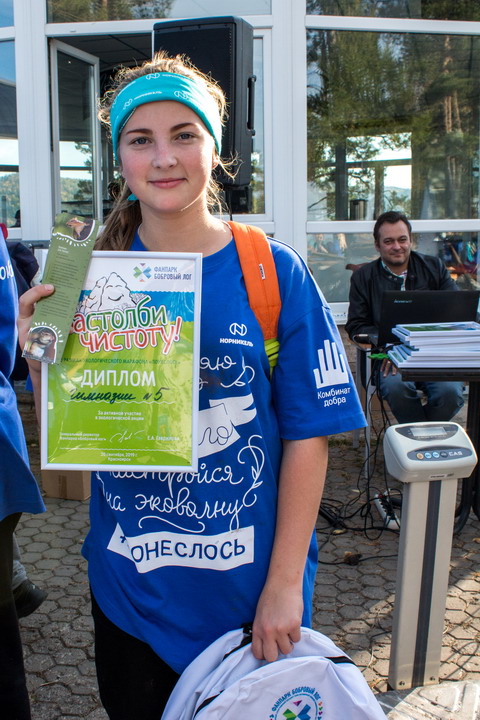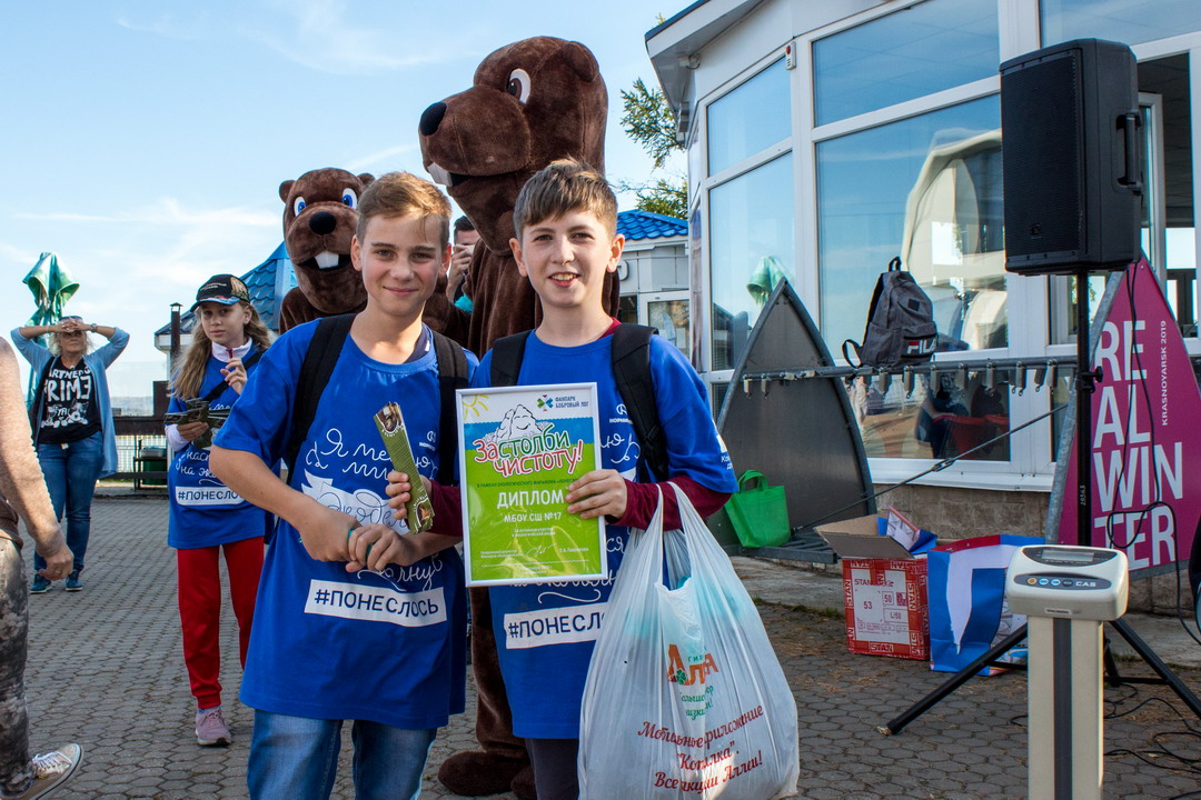 В результате сегодняшней акции было собрано 962,2 кг мусора. Больше всех, 195,2 кг собрала команда школы № 78. Она получила памятный кубок. Второе место заняла команда гимназии № 5. Они собрали 151,75 кг и третье место заняли учащиеся 76-ой школы Красноярска, собрав 140 кг мусора.