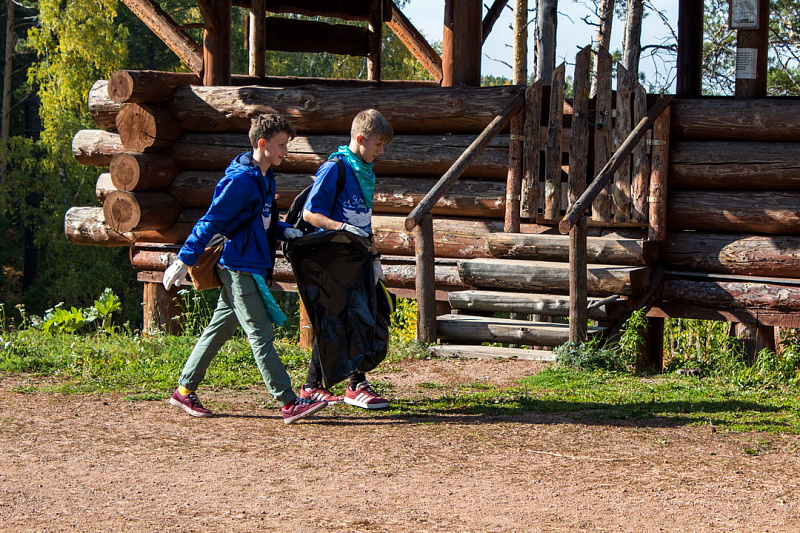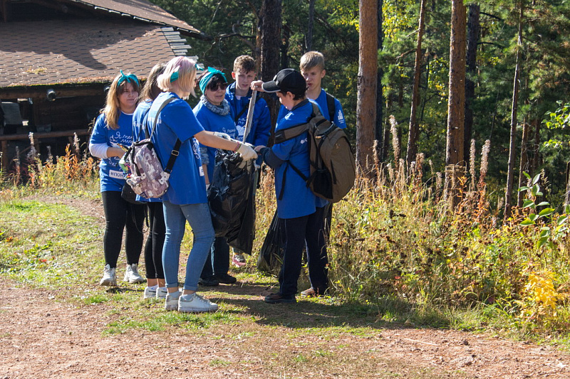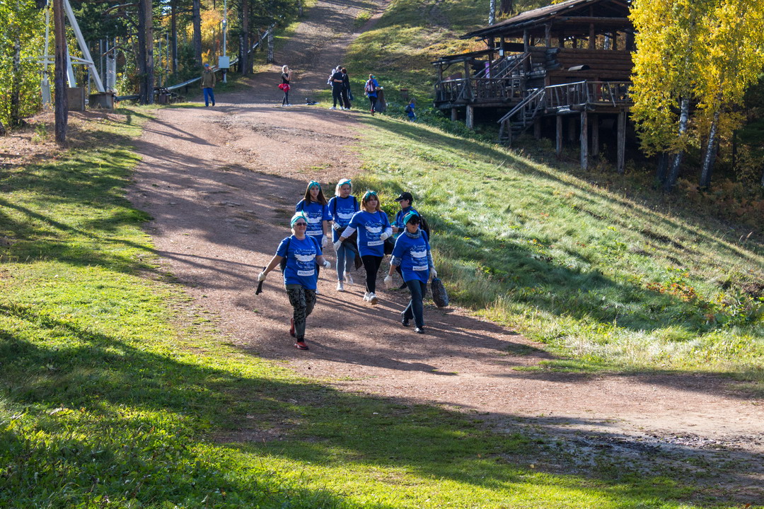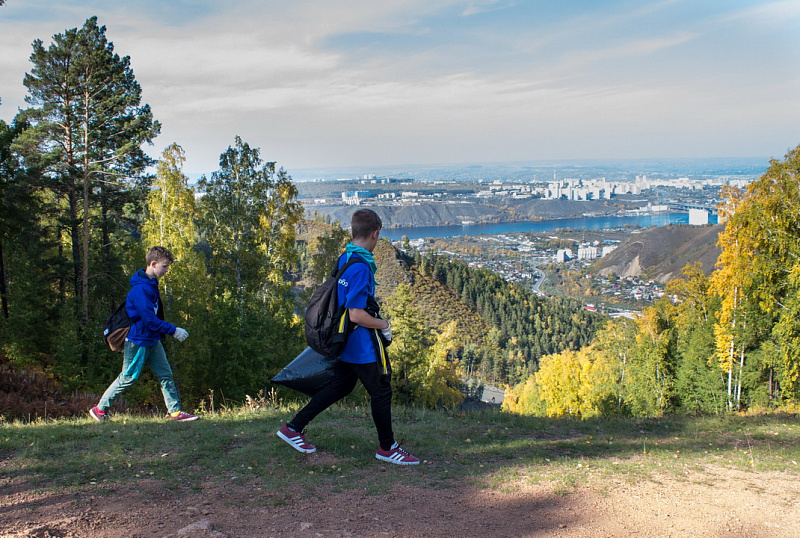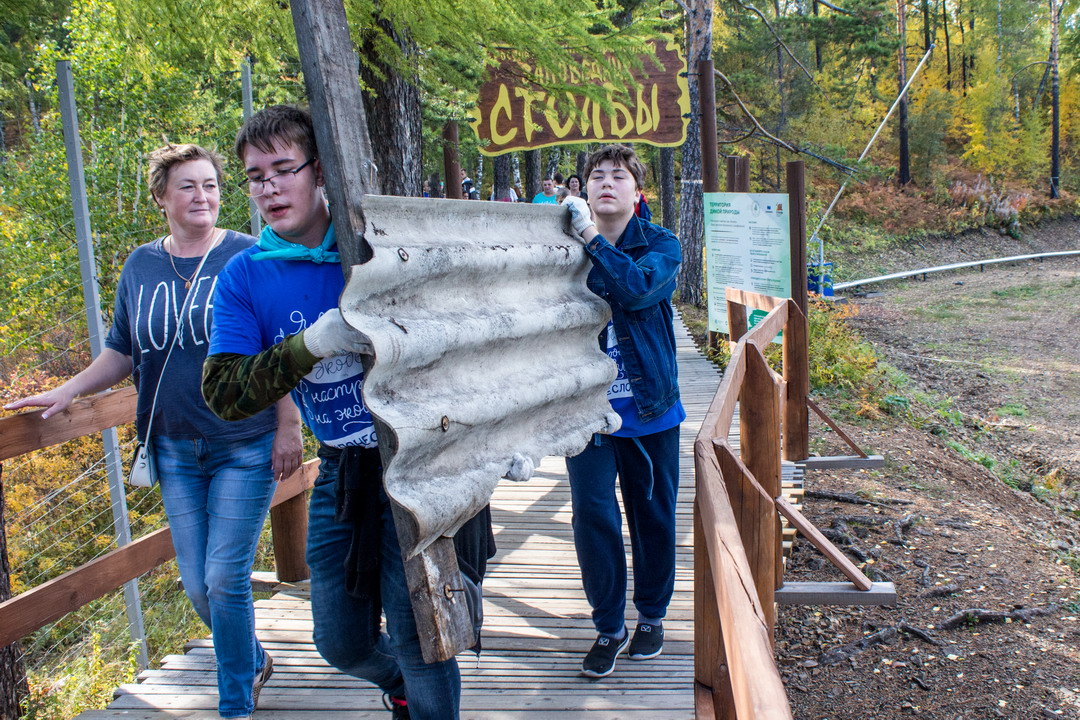 Ребята убирали территорию на двух самых популярных туристических маршрутах, ведущих на Столбы со стороны Фанпарка «Бобровый лог»: один по экотропе в направлении Центральных Столбов и второй - к скальному массиву Такмак.