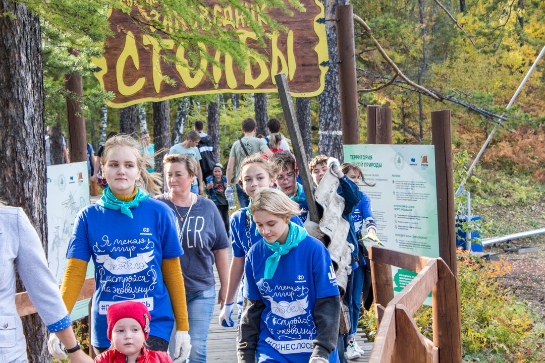 Экоакция проходит традиционно в преддверии Всемирного Дня туризма уже восьмой год подряд. В этом году на призыв «ЗаСтолби чистоту!» откликнулись 11 школьных команд Свердловского района. Юные борцы за отдых без мусора и чистую природу высадились на вершине канатно-кресельной дороги К1 и оттуда пошли по маршрутам прибирать заповедник «Столбы».