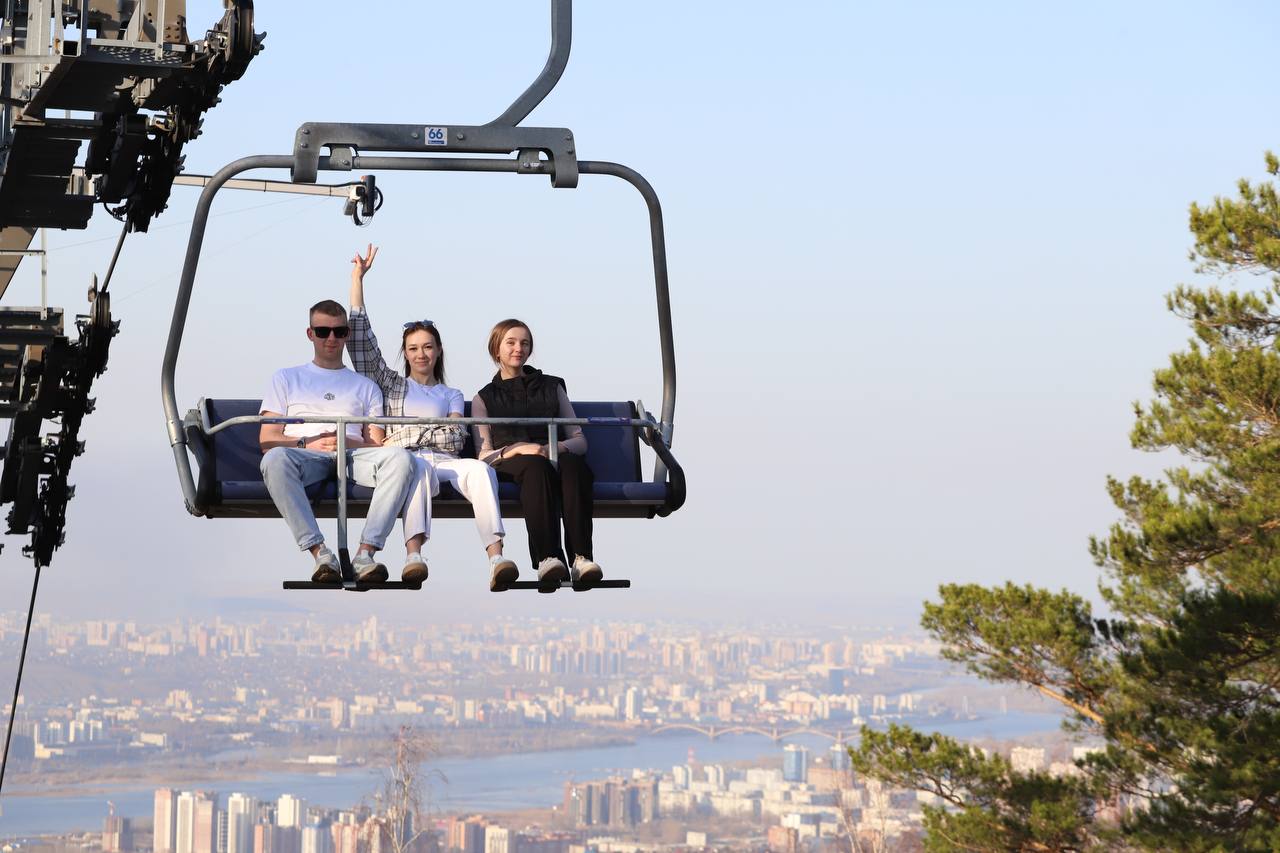 4-х местный канатно-кресельный подъемник К1 ведет на вершину склона, где со смотровой площадки открывается вид на бескрайние лесные массивы с одной стороны и Красноярск с другой.